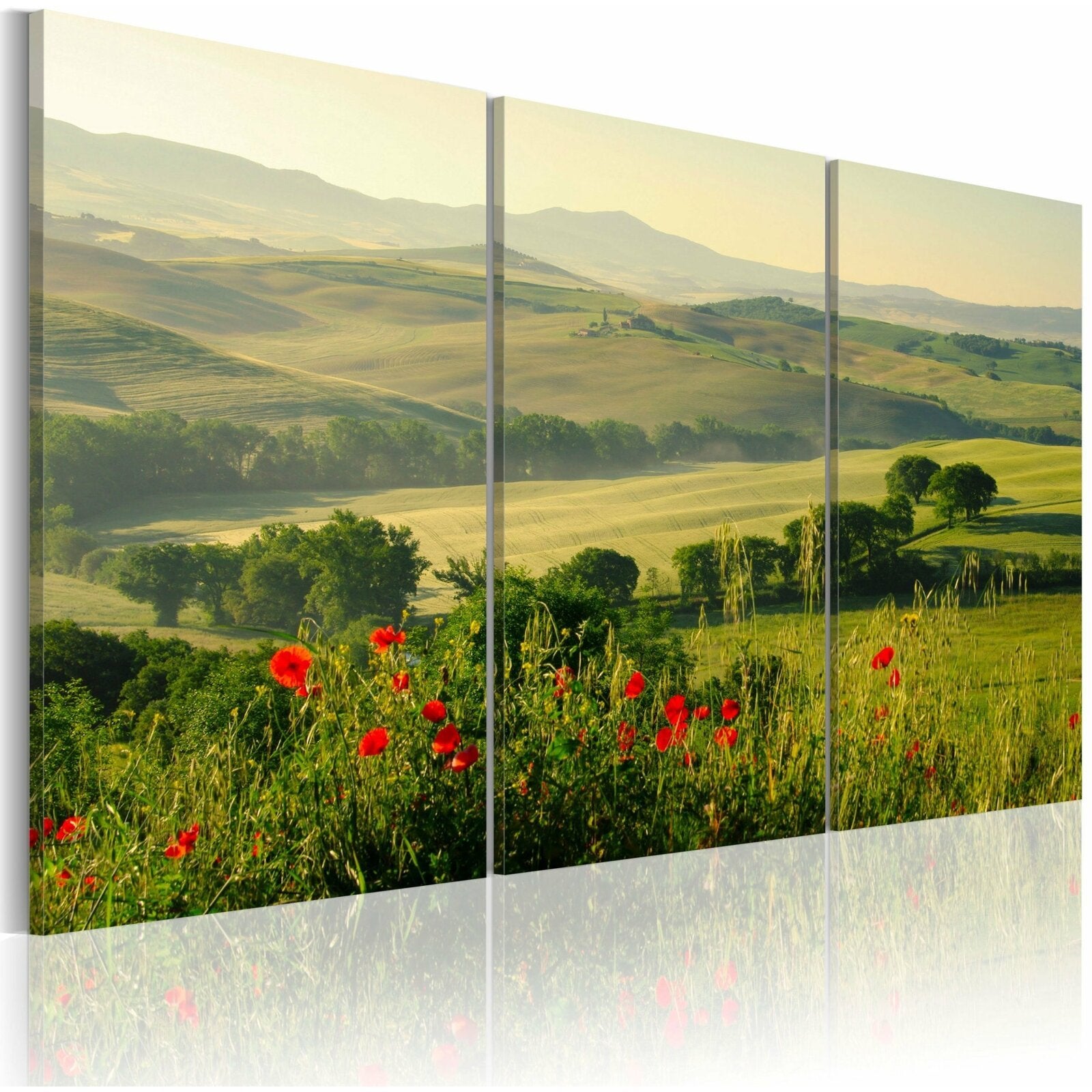 Tableau coquelicots sur les collines de toscane - 120 x 80 cm