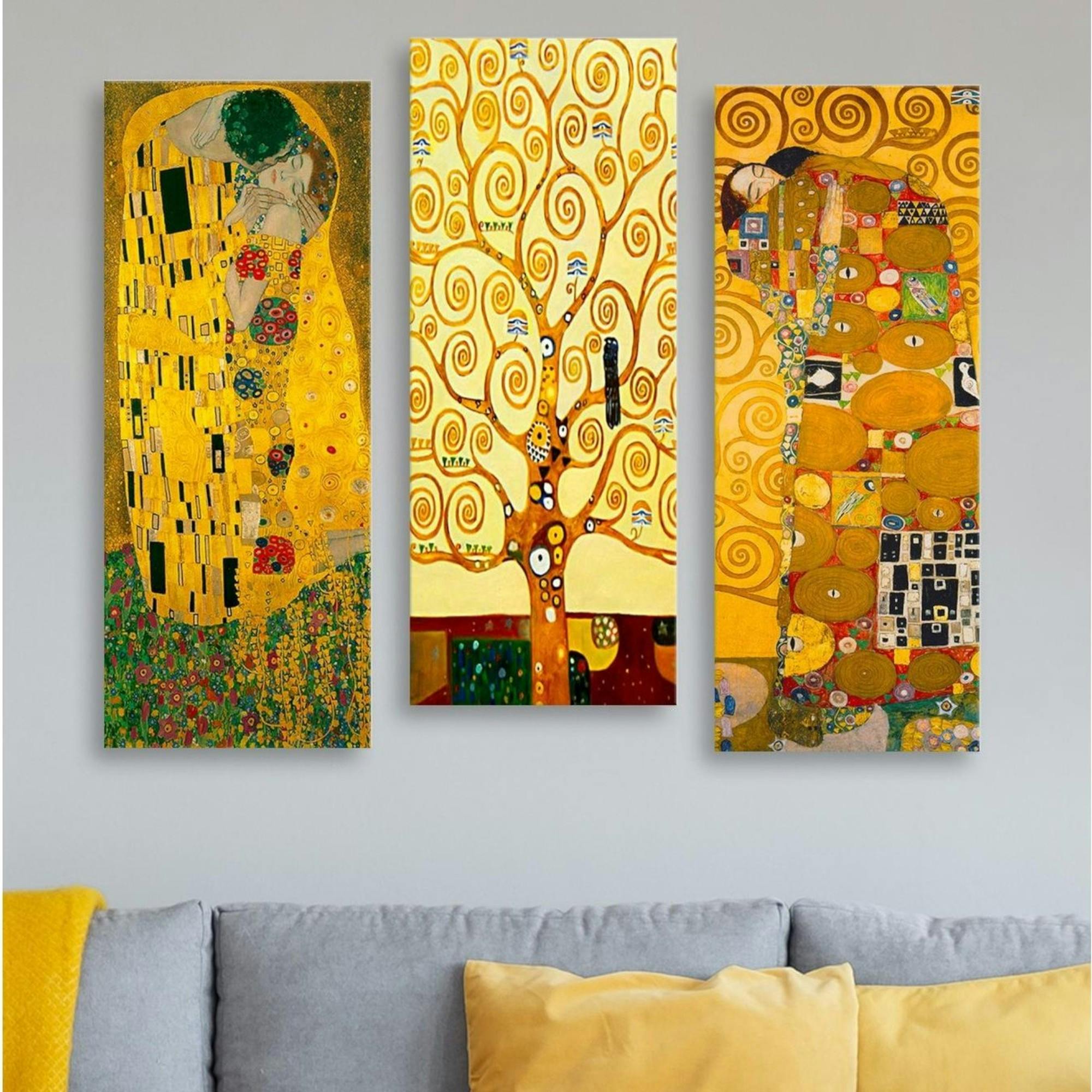 Tableau décoratif Klimt – Baiser, Arbre, Etreinte (set de 3).