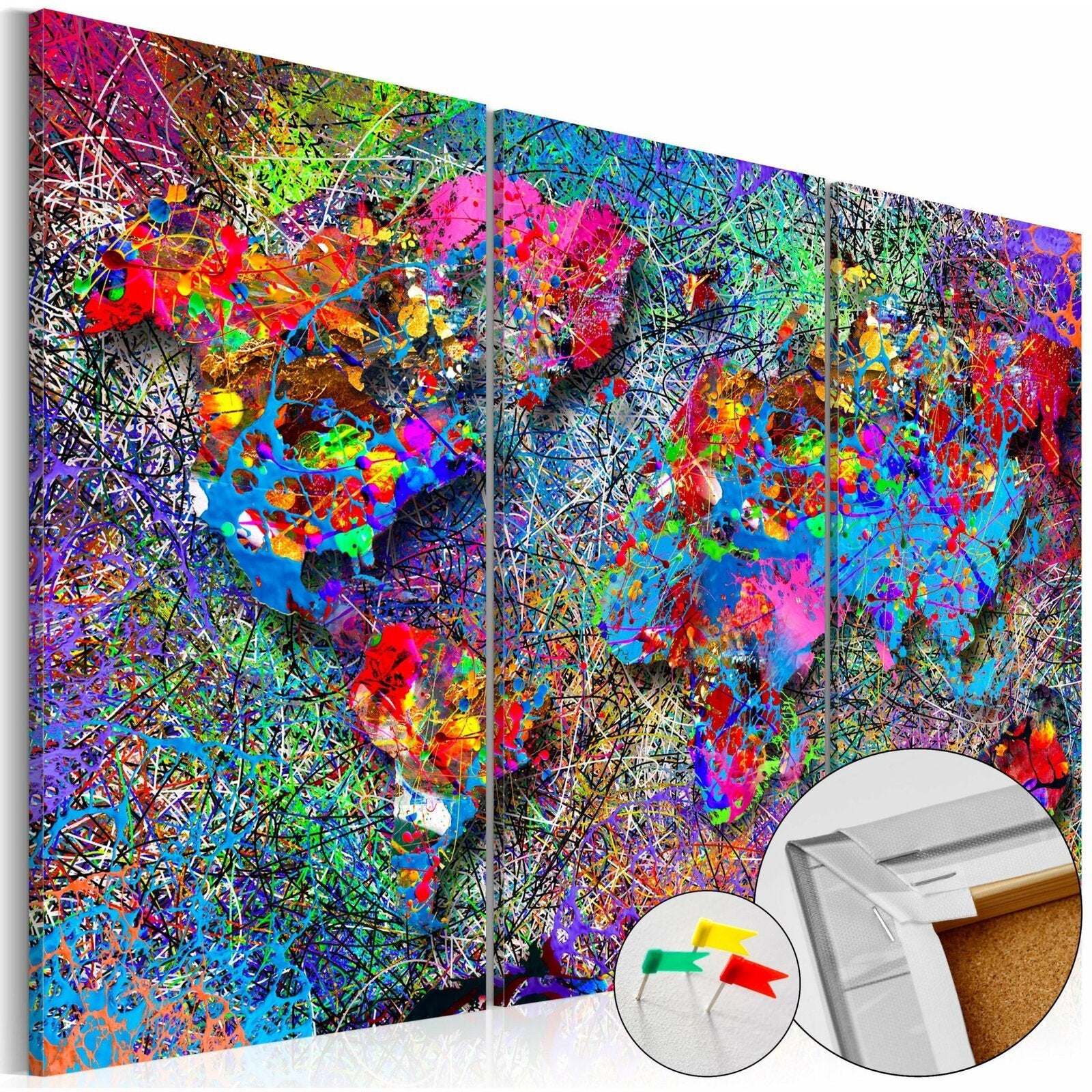 Le tableau en liège 'Colourful Whirl' est plus léger que les décorations murales traditionnelles. Grâce à cela les tableaux décoratifs en liège peuvent être suspendus sur tous les endroits souhaités dans votre logement ou bureau. La toile imprimée est placée sur la plaque en liège, grâce à quoi les couleurs d'impression sont bien définies et les détails — même les plus petits — sont restitués. Vous pouvez créer un motif personnalisé sur votre mur en y plantant des punaises ou notes!