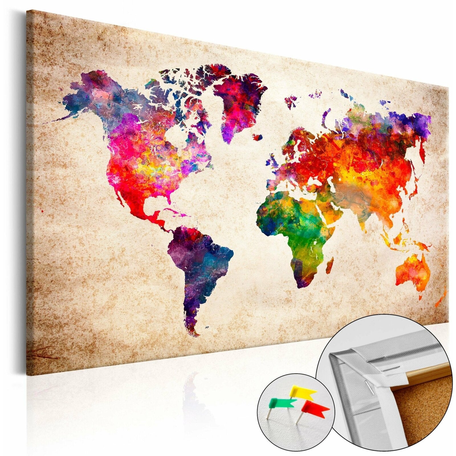 Le tableau en liège 'Colourful Universe' est plus léger que les décorations murales traditionnelles. Grâce à cela les tableaux décoratifs en liège peuvent être suspendus sur tous les endroits souhaités dans votre logement ou bureau. La toile imprimée est placée sur la plaque en liège, grâce à quoi les couleurs d'impression sont bien définies et les détails — même les plus petits — sont restitués. Vous pouvez créer un motif personnalisé sur votre mur en y plantant des punaises ou notes!