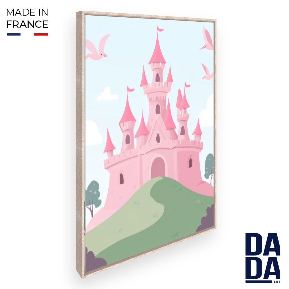 Tableau imprimé et encadré pour enfants 'Château féerique' / 100x140cm / Cadre Effet naturel / Fabriqué en France / Toile murale / DADA ART