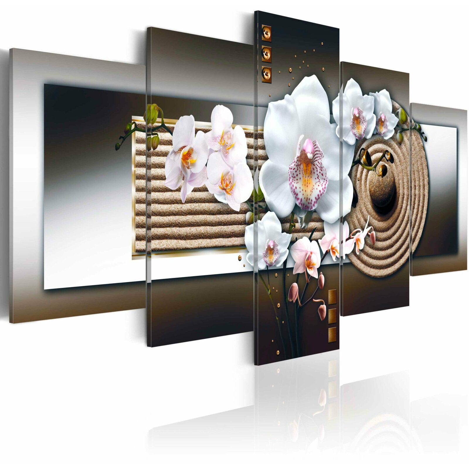 Tableau orchidée et jardin zen marron - 200 x 100 cm
