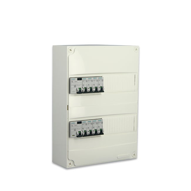 Tableau prééquipé Siemens, 8 modules, IP65 étanche, interrupteur différentiel 40A, disjoncteur 16A, prise 16A, usage intérieur/extérieur