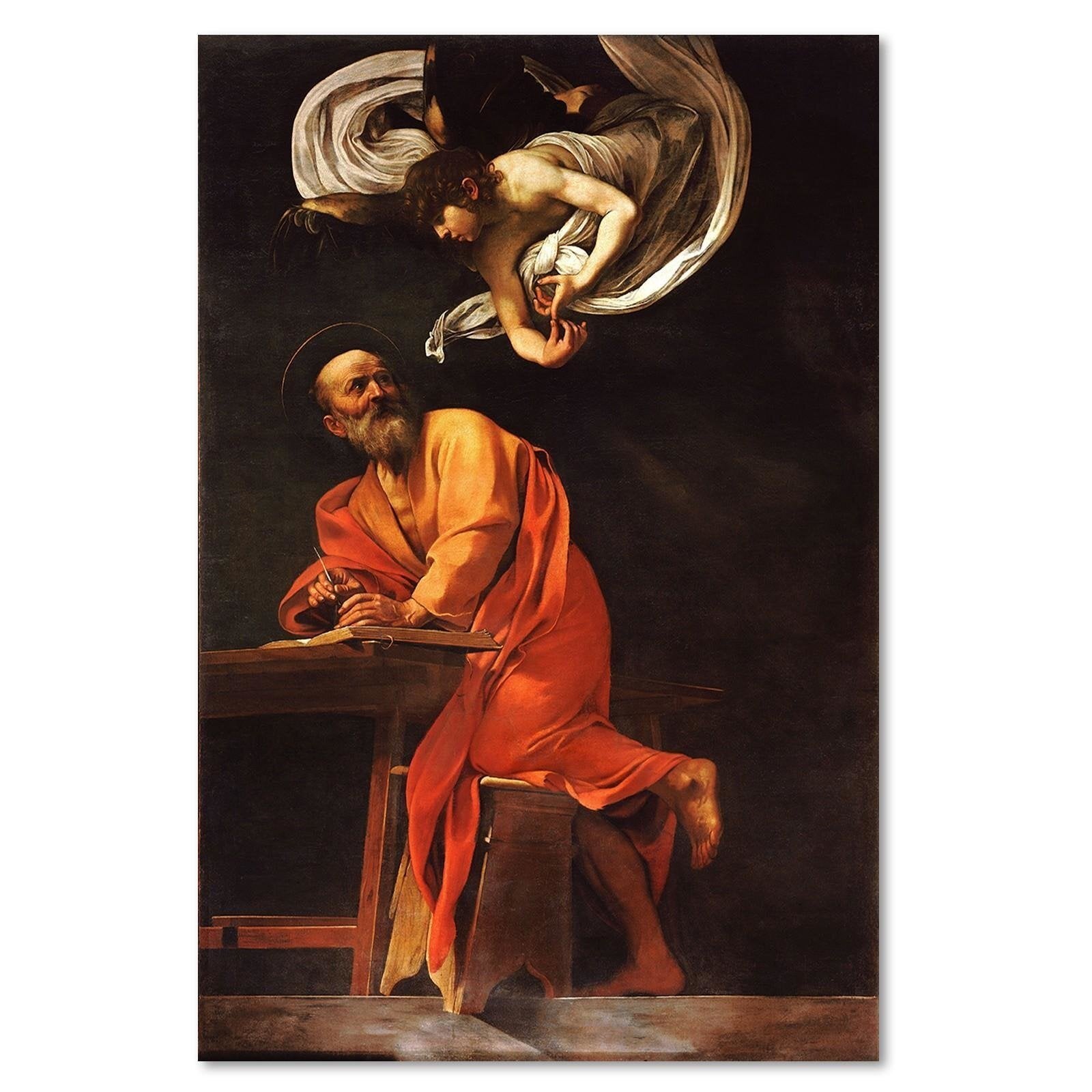Tableau reproduction photo du caravage - inspiration st. Matthieu - 50 x 70 cm