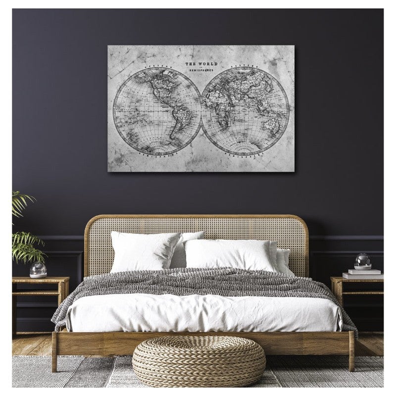 Tableau toile en kit THE WORLD IN HEMISPHERES NB 140 x 95 cm - Toile textile sans PVC, Made in France par Scenolia