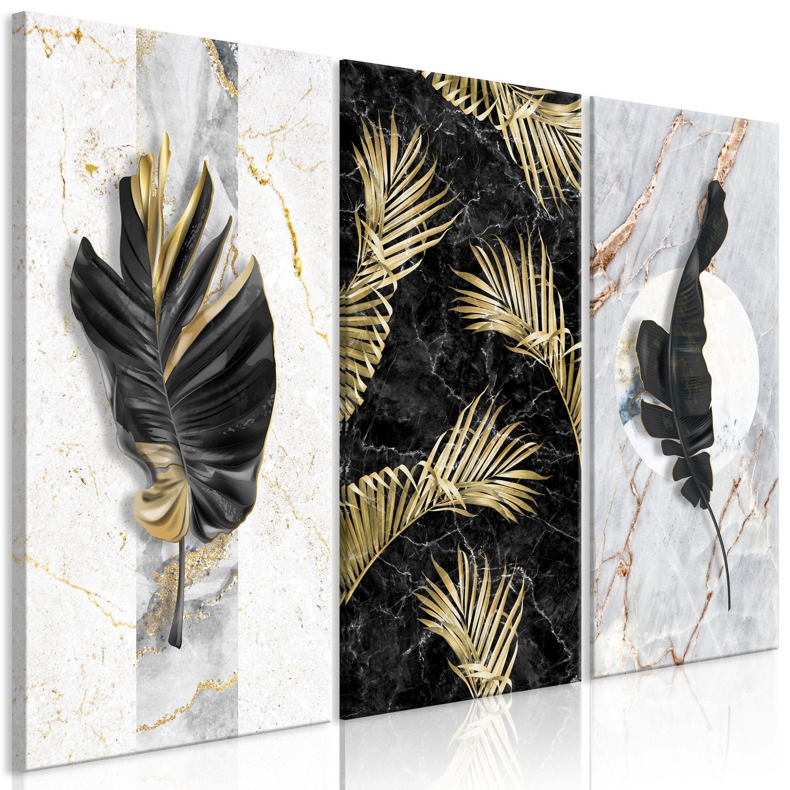 Laissez le tableau 'Tableau - Golden Trio (3 Parts)' changer votre maison et celles de vos proches !