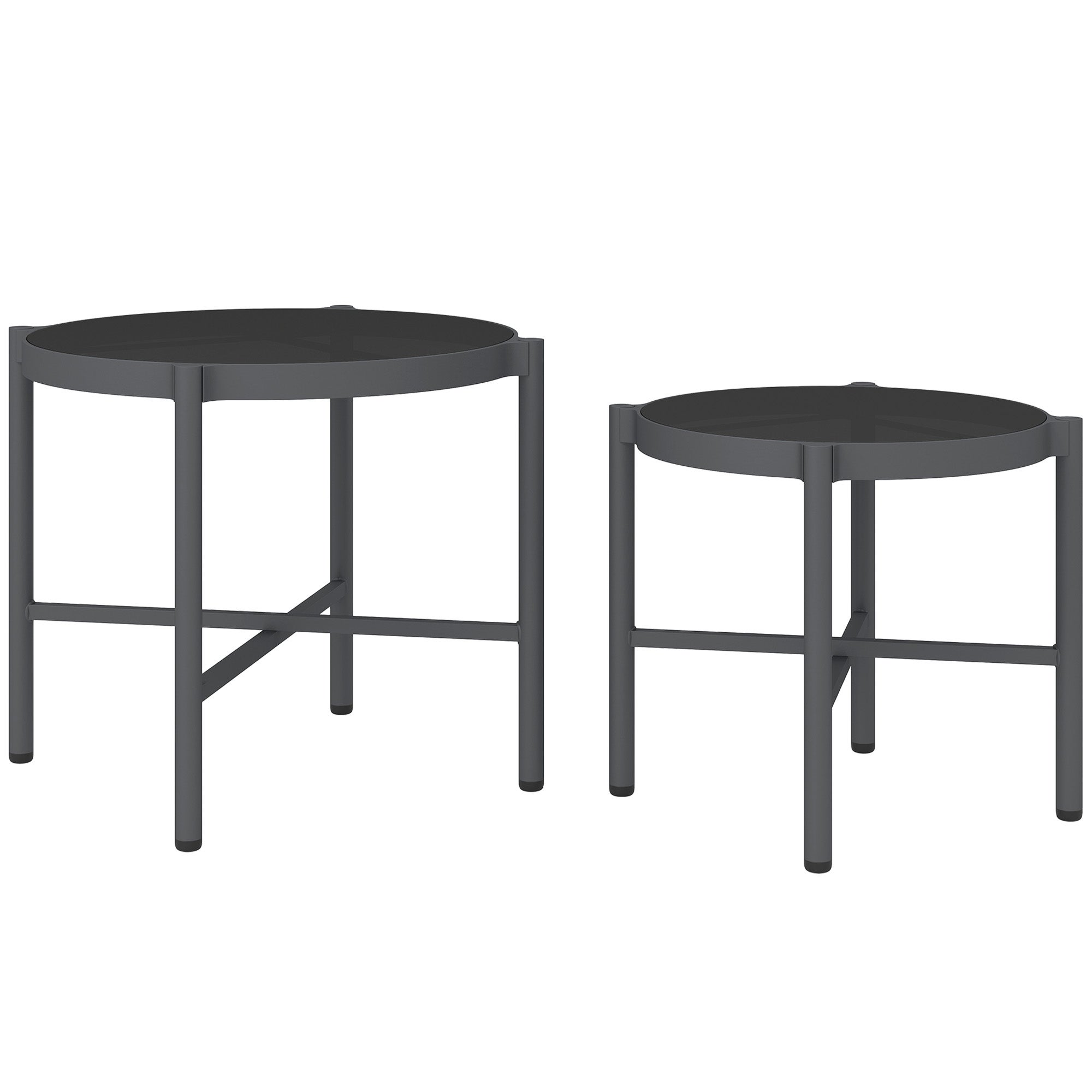 Explorez le ensemble de table gigogne de patio Outsunny, idéal pour l'extérieur avec un design noir emboîtable. Chaque table a un plateau en verre trempé de 0,5 cm, facile à nettoyer et sûr. Fabriquées en aluminium revêtu de poudre, elles résistent aux intempéries. Parfaites comme tables de nuit ou d'appoint. ● Lot de 2 tables basses de jardin optimisant l'espace pour les objets quotidiens; ● Finition noire élégante pour un attrait esthétique moderne; ● Conception emboîtable économisant de l'espace lorsqu'elle n'est pas utilisée; ● Plateau en verre trempé de la table d'appoint gigogne offrant durabilité et facilité de nettoyage; ● Aluminium revêtu par poudre résistant à la rouille et aux intempéries; ● Convient à une utilisation intérieure et extérieure; ● Supporte jusqu'à 30 kg, montage nécessaire; ● 2 x Table d'Appoint de Jardin; ● 1 x Manuel d'Assemblage;