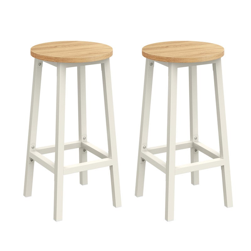 Tabouret de Bar, Lot de 2, Chaise de Cuisine, Siège Haut, Cadre en Métal, avec Repose-Pieds, Beige Chêne et Blanc Classique