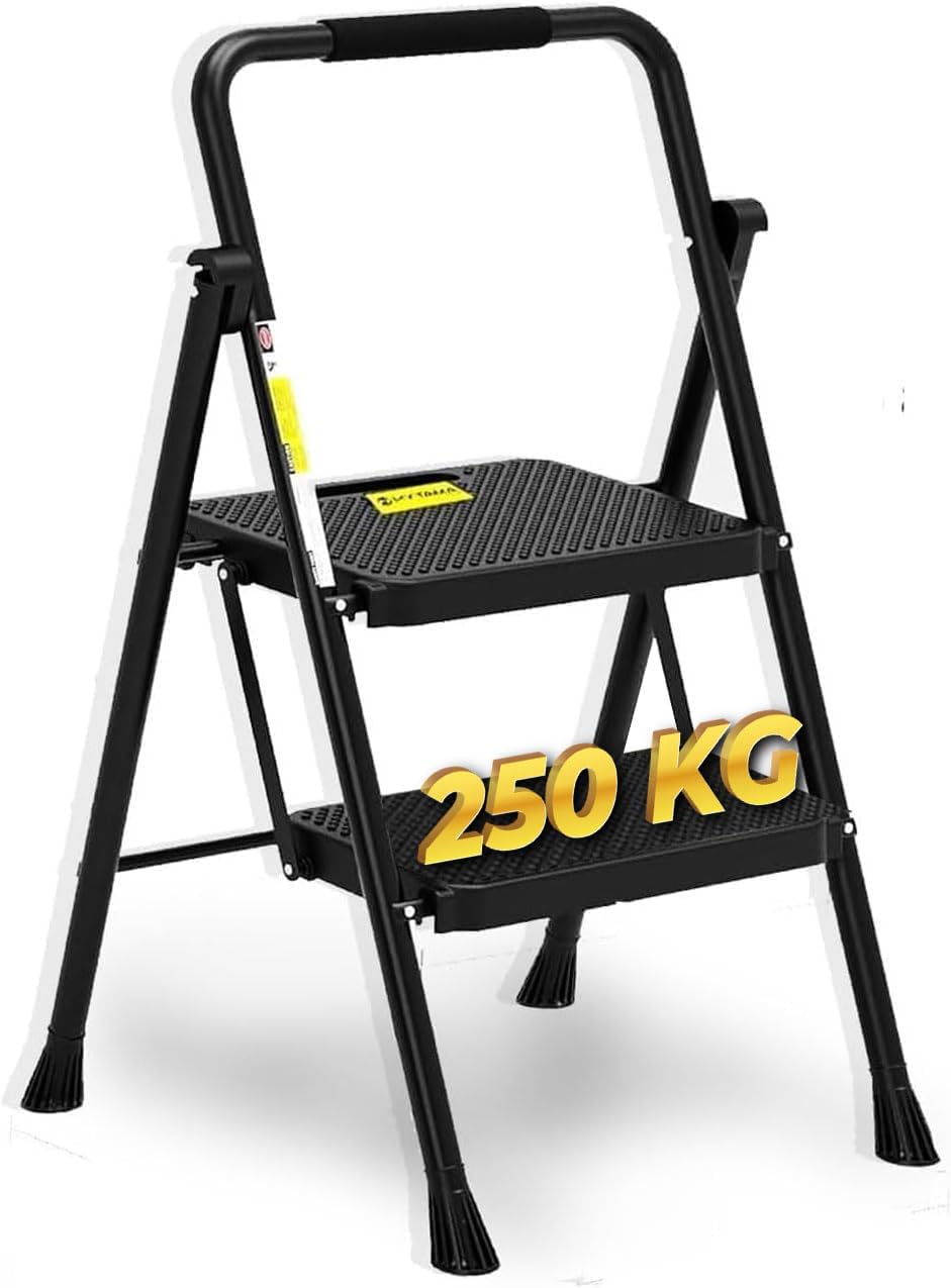 Tabouret échelle pliant peu encombrant BLACK MAX avec marches antidérapantes et poignée en caoutchouc souple pour plus de sécurité max 150, 2 ÉTAPES