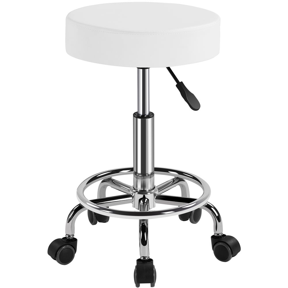 Tabouret Rond à Roulettes avec Assise Réglable en Hauteur et Revêtement en Similicuir Blanc Yaheetech