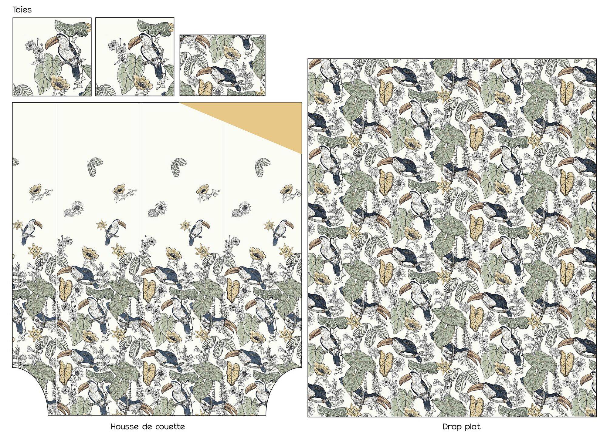 La collection Toco Vert, signée Tradilinge, est imprimée sur une toile de coton naturelle, au tissage 57 fils/cm² : elle a simplement été lavée et désencollée, sans subir aucun traitement chimique. Plus naturelle qu'une toile en coton blanchie, elle est aussi moins chargée en encres et en colorants. Cette taie au style sans frontières, source de bonheur au quotidien, vous offre une atmosphère anti-morosité.- Motif all over tropical.