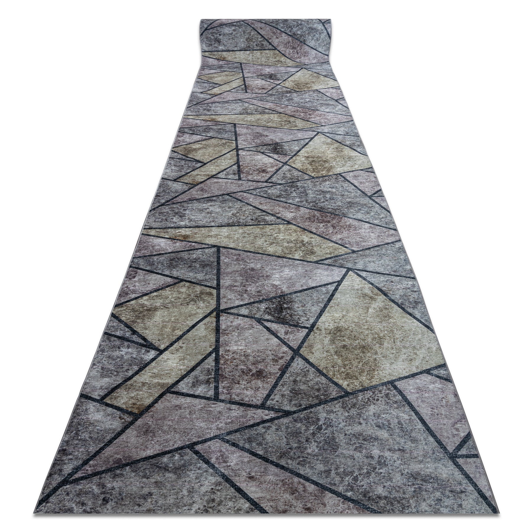 TAPIS DE COULOIR antidérapant LOTUS MOSAIC 22010 Mosaïque gris lavable 120cm 120x450 cm