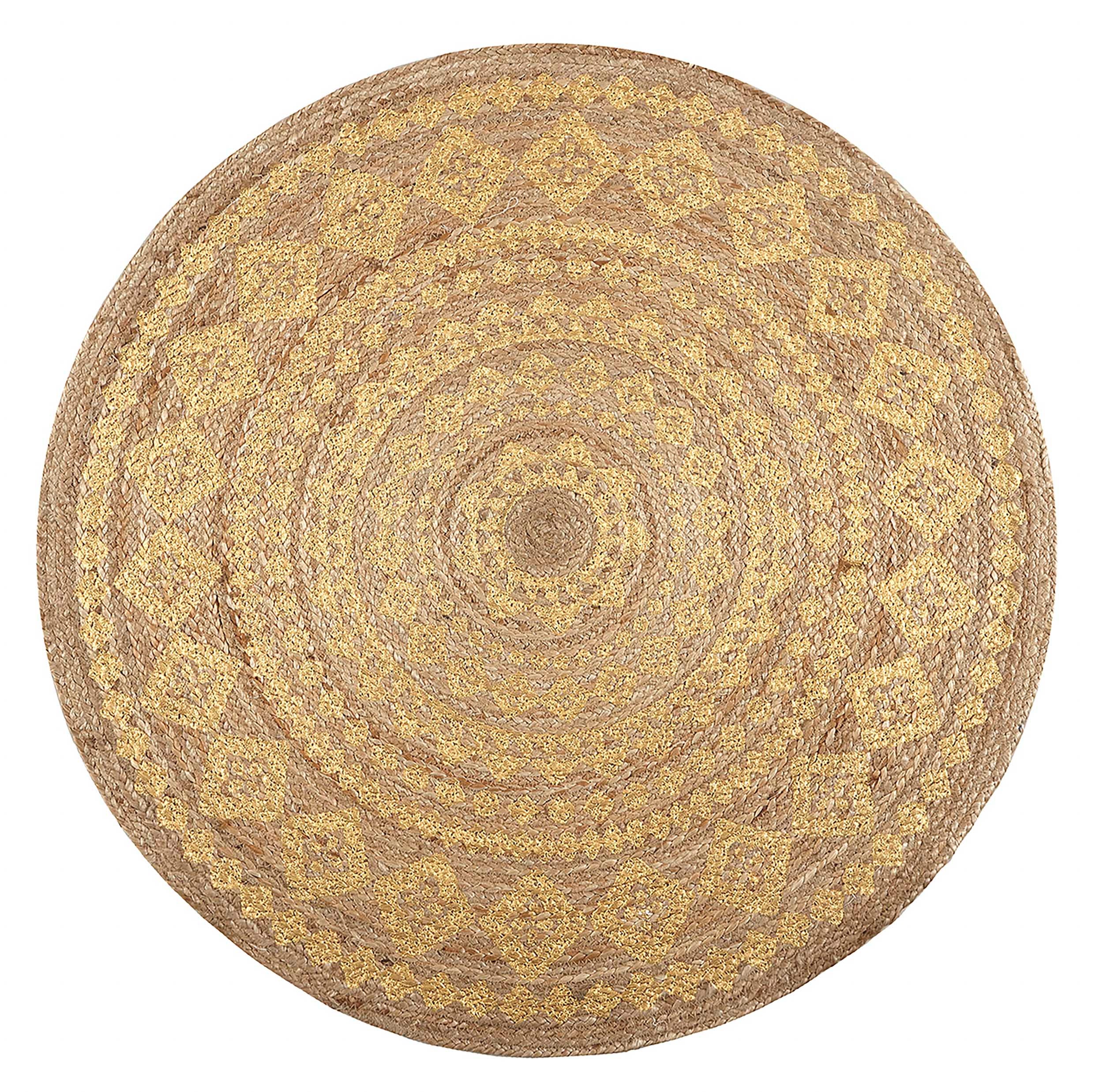 Tapis en jute imprimé GOLD Ø140 cm – Fait main, naturel, élégant avec des détails dorés
