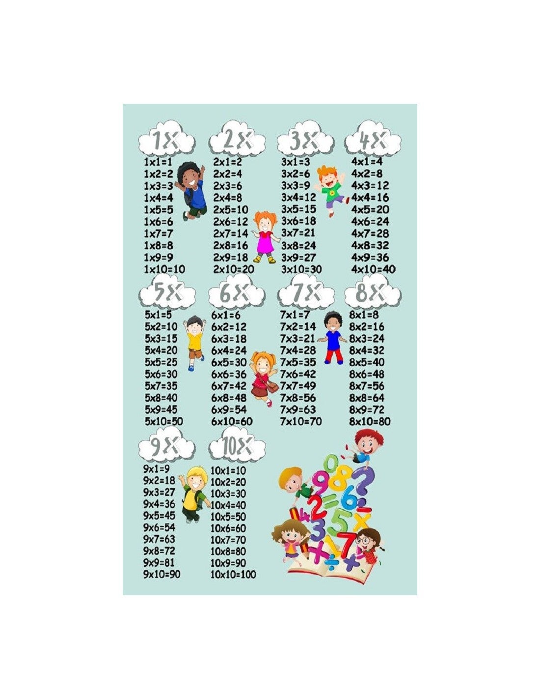 Décoratif et éducatif à la fois, ce tapis "Table de Multiplication" a tout pour plaire!Ces tapis sont fabriqués en polyester, doux au toucher, ce qui le rend très facile à nettoyer, même sur les taches les plus tenaces. Tapis antidérapant et lavable en machine à 30°C.Poids : 720gr/m2Epaisseur : 6mmDisponible en 2 tailles :- 100x160cm- 120x180cmNos tapis étant fabriqués à la machine, un écart de plus ou moins 3 cm peut être constaté.Il ne s'agit pas d'un défaut de fabrication, ce que le client admet et reconnait.