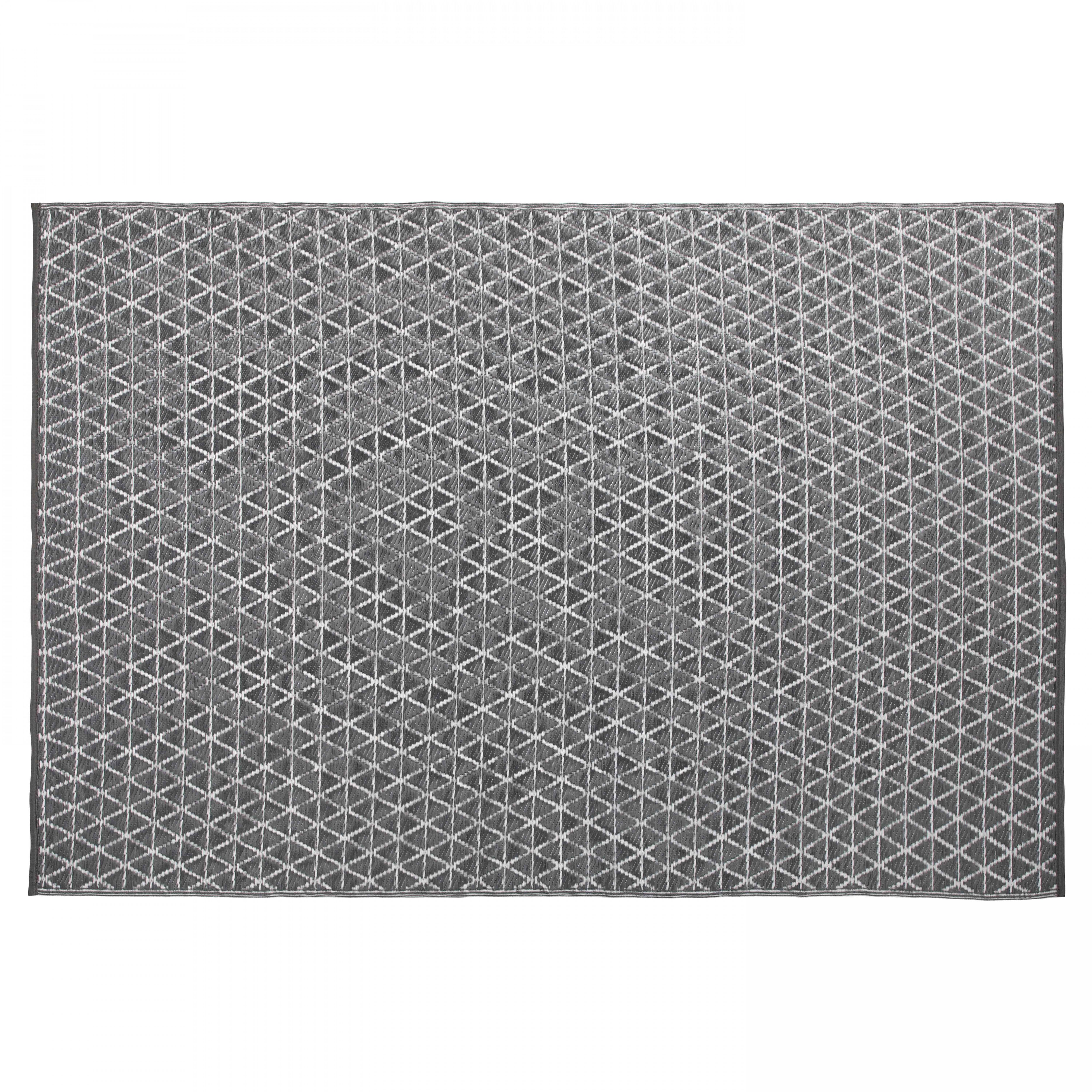 Tapis d'extérieur en PVC style nordique. Le tapis nordique en PVC est réversible et propose deux combinaisons de couleurs selon la face exposée : gris avec motifs blancs ou blanc avec motifs gris. Une protection anti UV garantit à votre tapis d'extérieur une bonne tenue des couleurs dans le temps. Solide et résistant, le tapis PVC style nordique est aussi facile à entretenir et à laver.