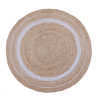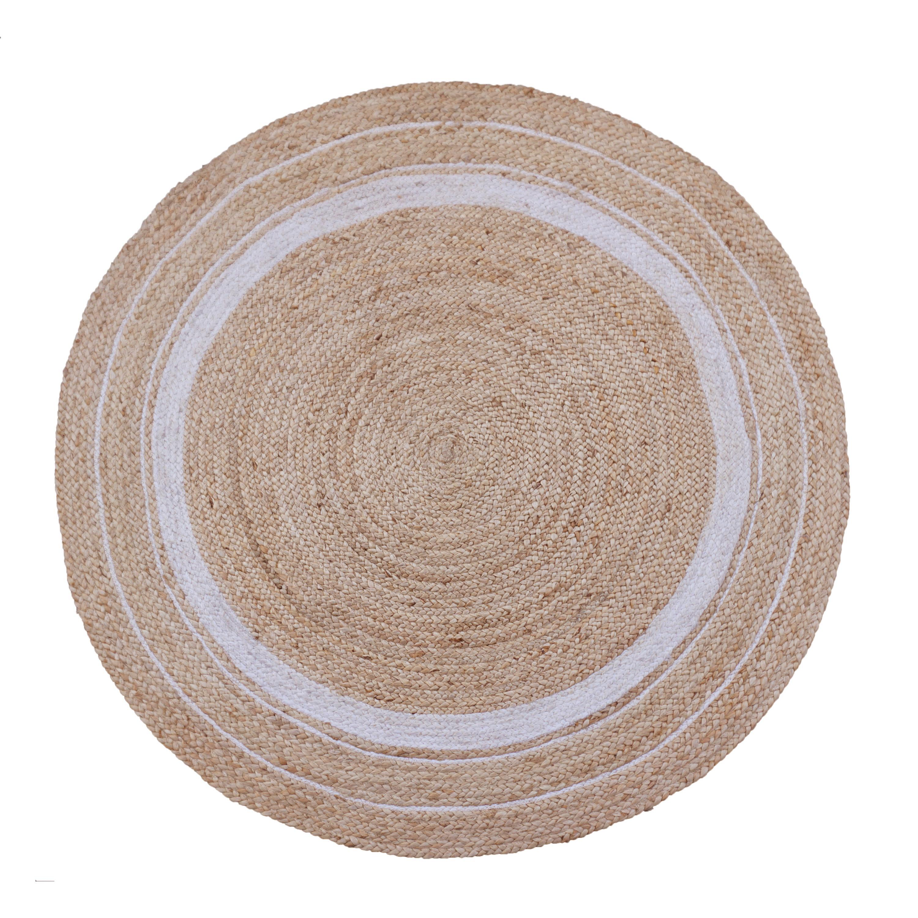 Tapis d'intérieur rond Inspire Ronda avec texture tissée plate et revêtement arrière en jute. Son design géométrique et moderne s'intégrera parfaitement à la décoration de votre maison. Non lavable. Il est également compatible avec le chauffage au sol. Chez Leroy Merlin, vous l'avez disponible en différentes tailles. Dimensions : 150 cm de diamètre.