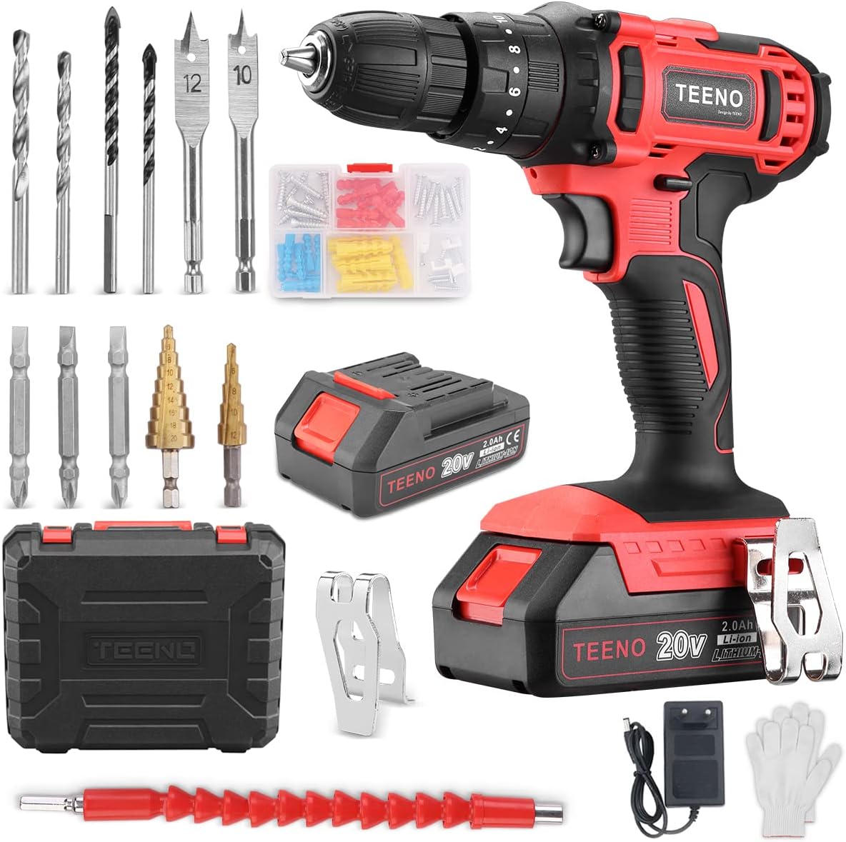 Teeno Perceuse visseuse à percussion sans fil PSR 20V, 2 Vitesses, 2Ah batteries