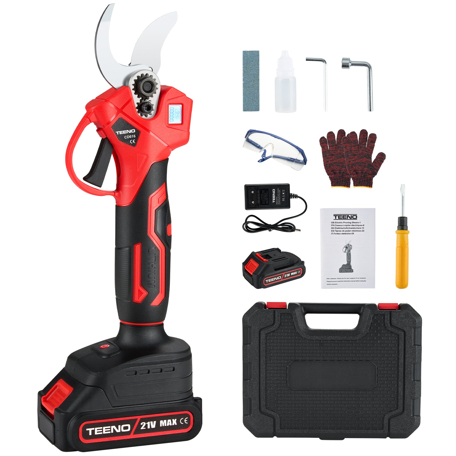 TEENO Sécateur électrique sur fil brushless 30mm avec LCD, 2 * 2000mAh Batteries