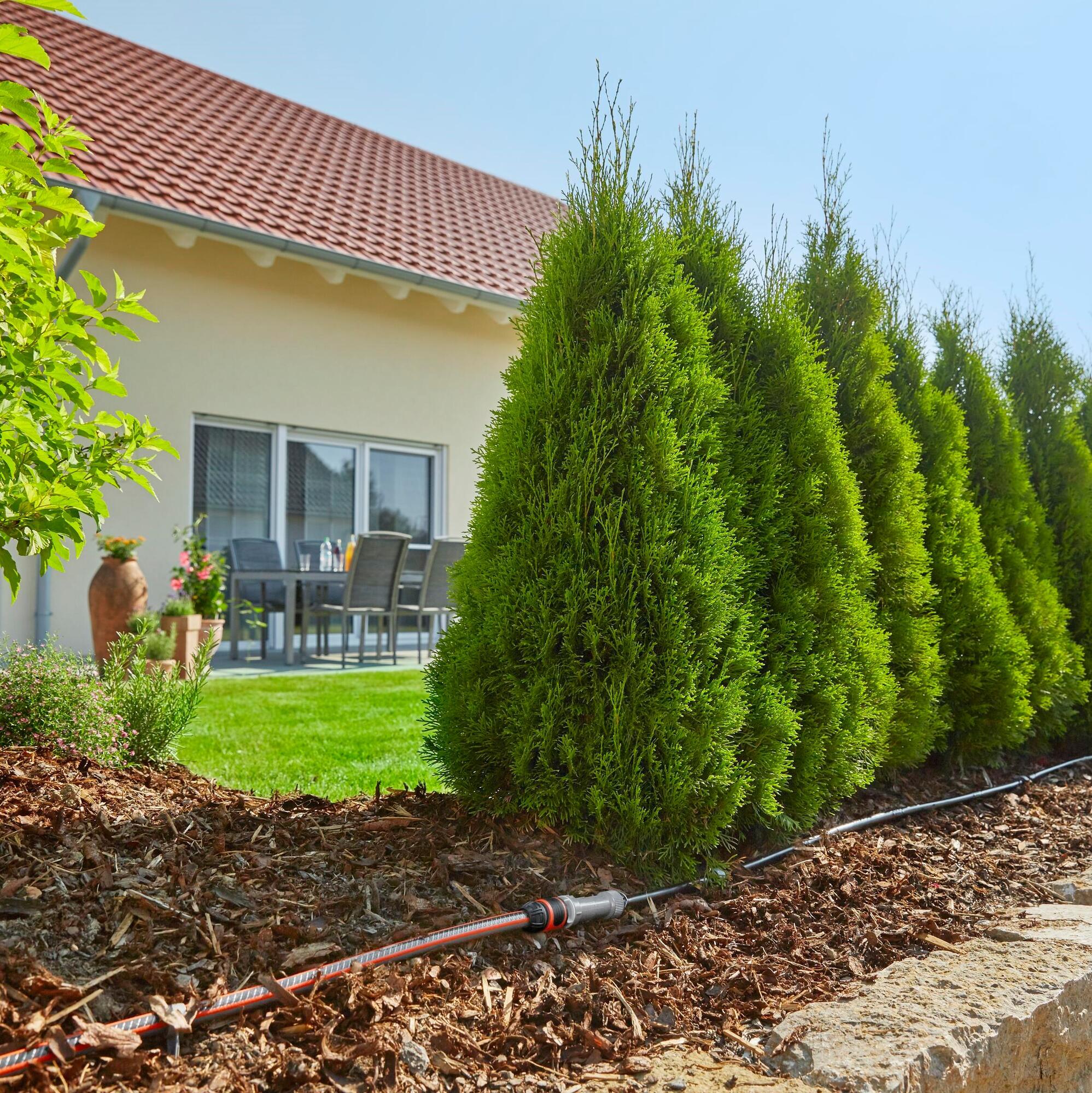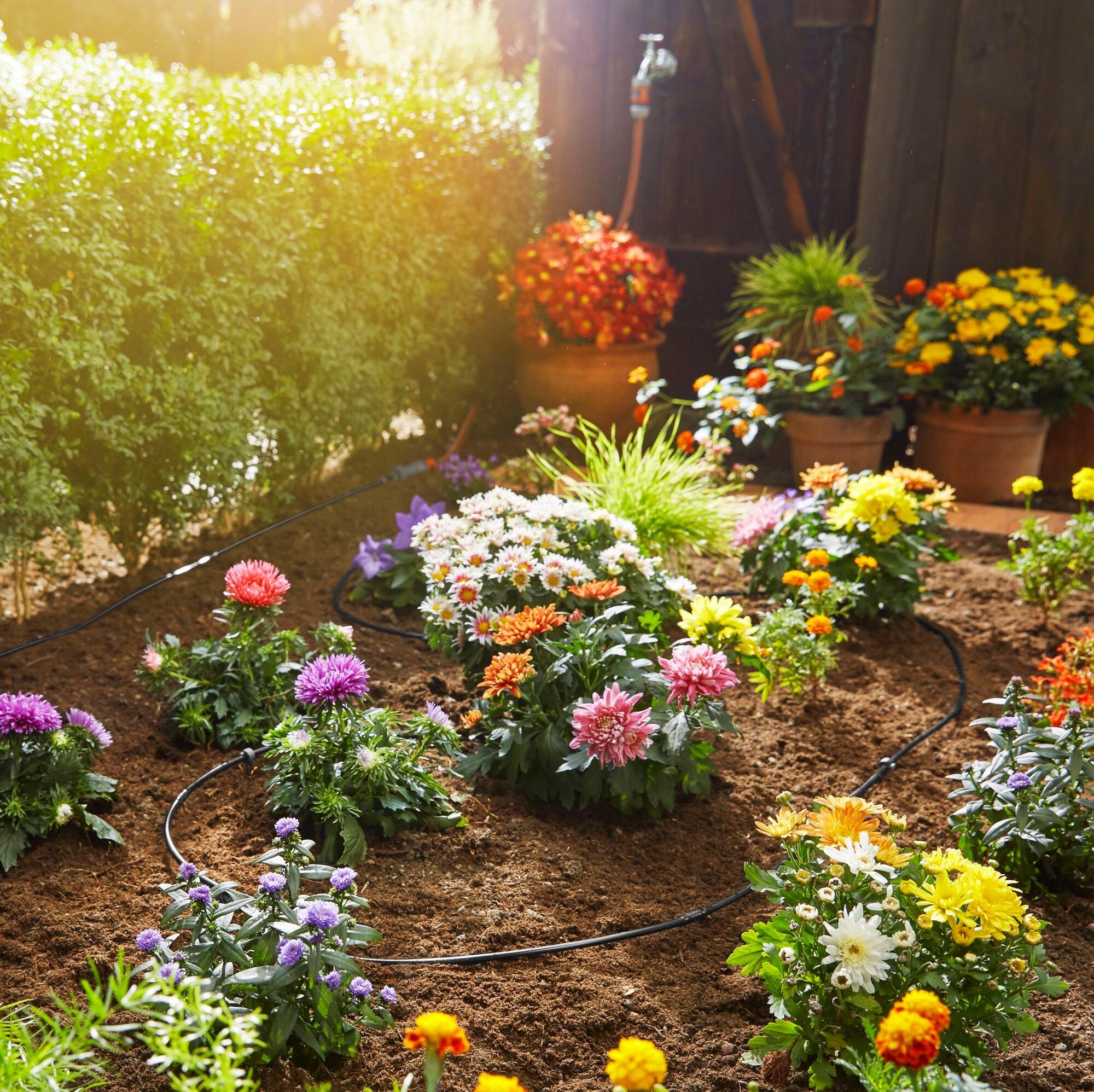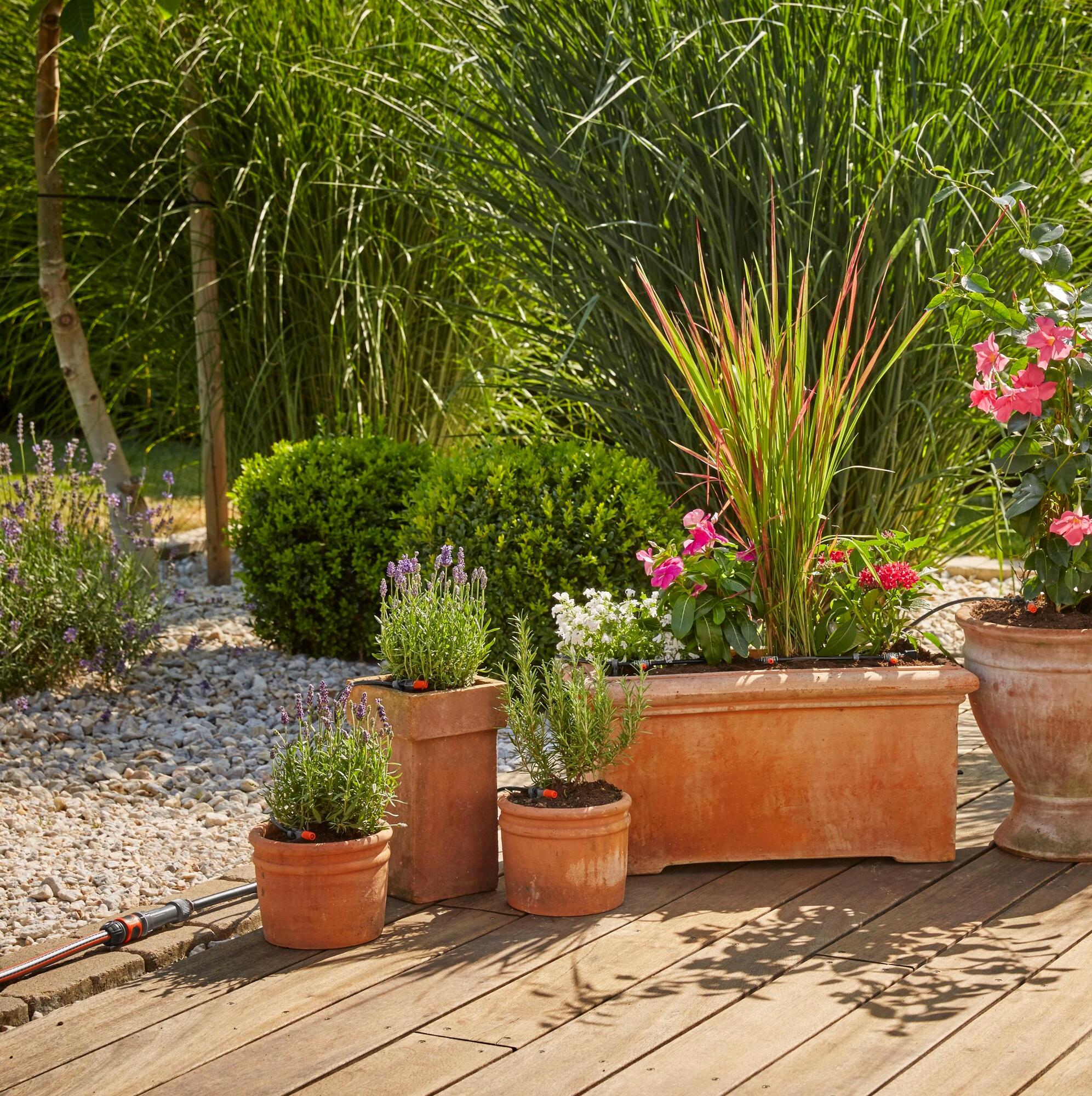 Les goutteurs d'arrosage goutte à goutte, idéaux pour un arrosage direct au pied des plantes, de plantes en pot, de certaines plantes du potager ou de haies, existent en versions préréglées ou réglables.