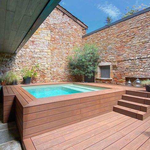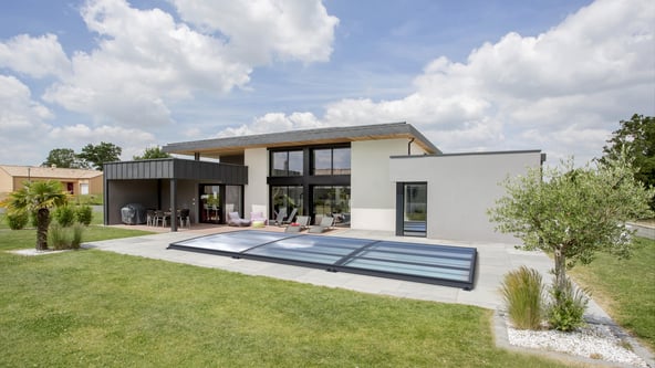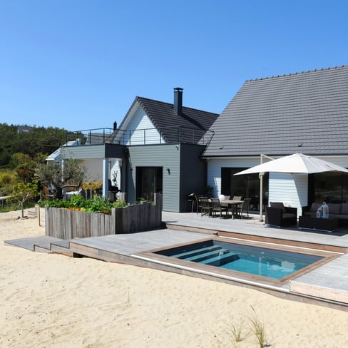 Les piscines enterrées couvrent en réalité plusieurs types de piscines : coque préfabriquée en un seul bloc, kit tout inclus de panneaux à assembler et bien sûr la piscine sur-mesure en béton.