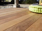 Bois exotique Bois dense et durable, résistant aux intempéries. Apporte une touche haut de gamme et une couleur chaleureuse sans entretien intensif. Durée de vie entre 15 et 25 ans.