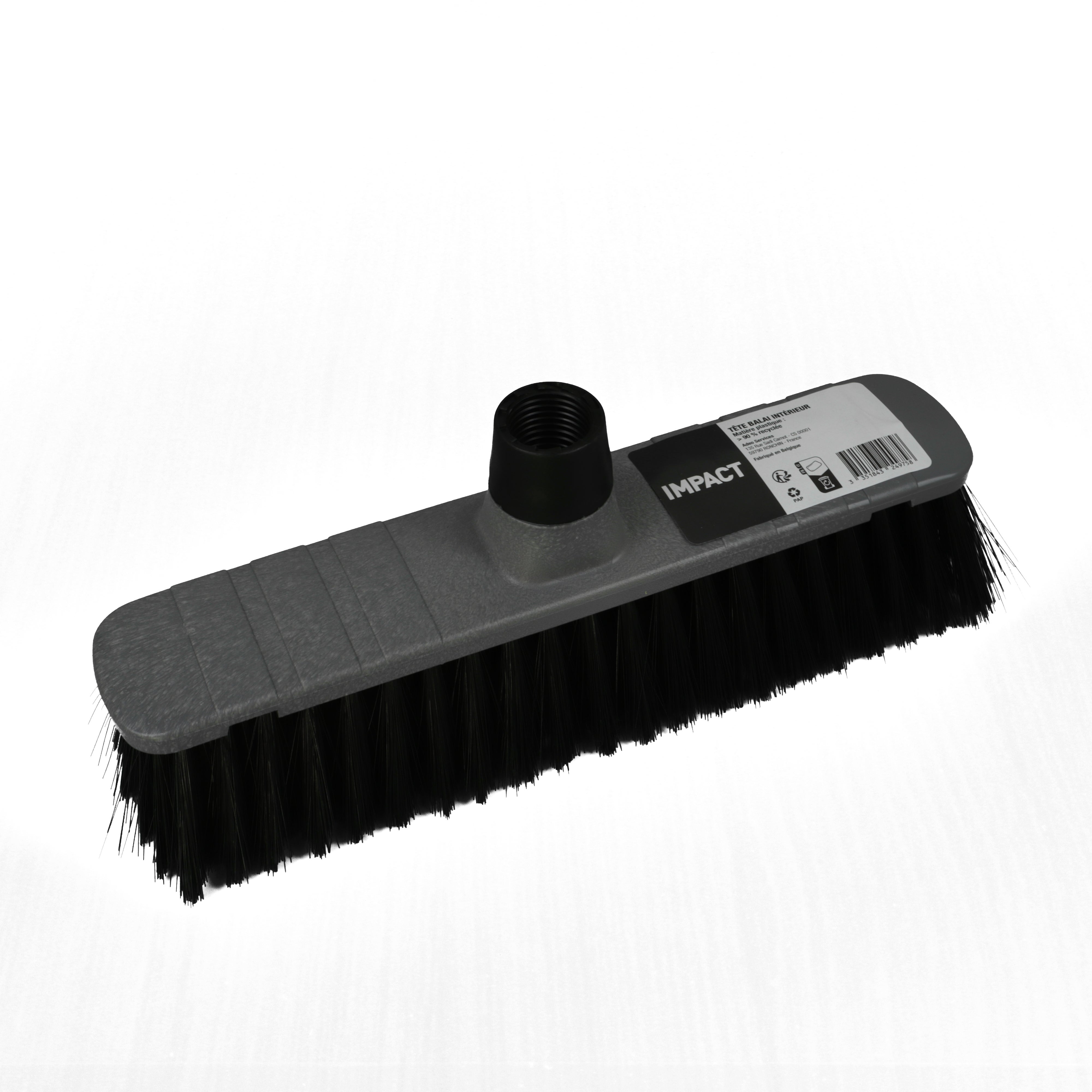 La tête de balai IMPACT pour sols, en poils synthétiques noires, et en plastique recyclé (90%) avec vis universelle. Le balai est idéal pour nettoyer les sols au sec.Pratique et facile à utiliser, sa vis universelle est spécialement conçu pour fixer sur toutes les manches IMPACT en toute facilité.