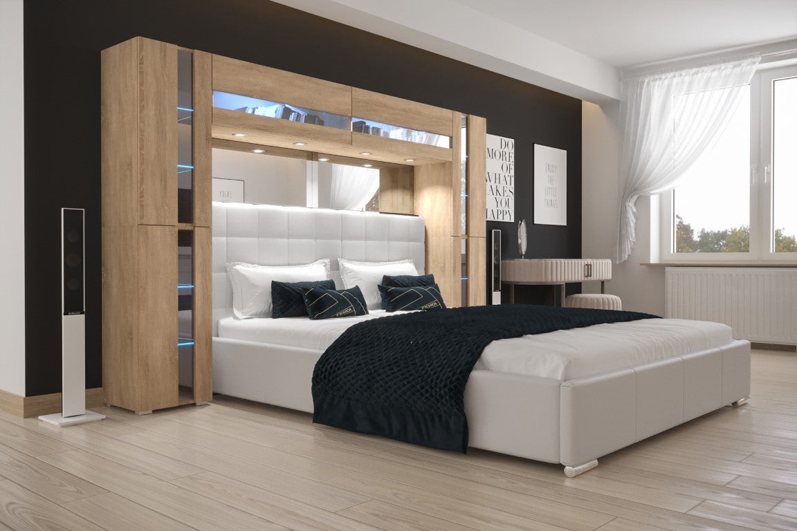 Tête de lit avec rangement Armoire - pont de lit PANAMA 14/M/S/5-1A chêne sonoma 256x184x35cm