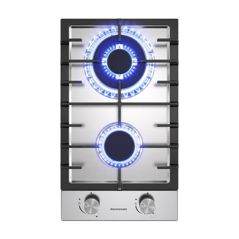 ThermoMate Plaque de Cuisson à Gaz GHSS302 2 Foyers, Encastrable, Gaz Naturel/Propane, Acier Inoxydable, 5200W