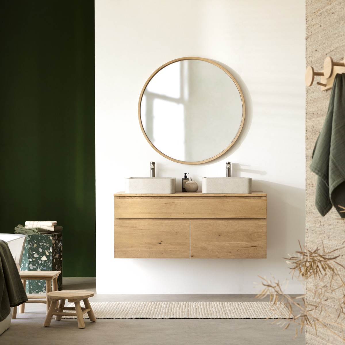 Le meuble double vasque à suspendre Jacob Oak en chêne, une salle de bain de la marque Tikamoon!