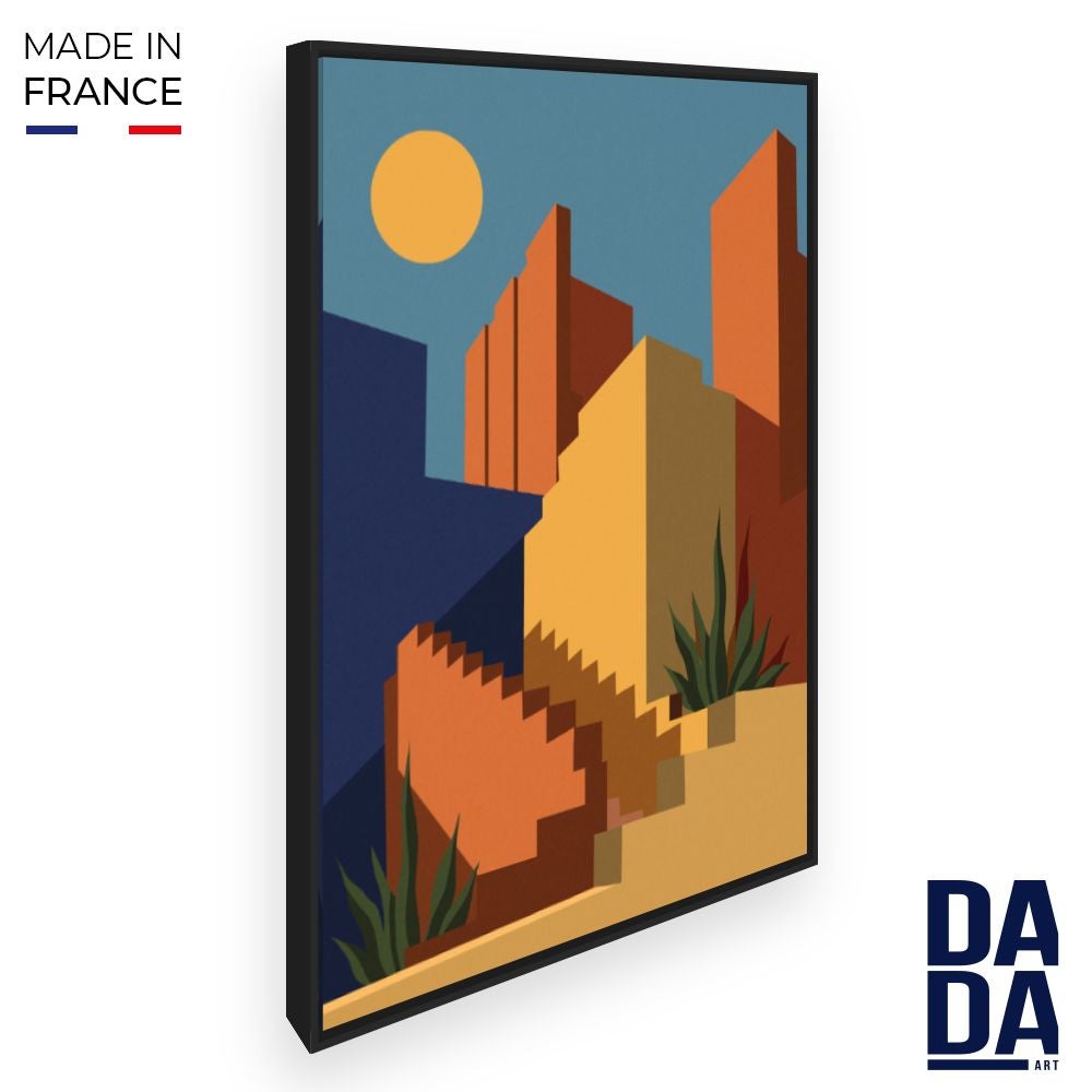 Toile encadrée Architecture ensoleillée / 72x108cm / Cadre Noir / Fabriqué en France / Déco murale / DADA ART