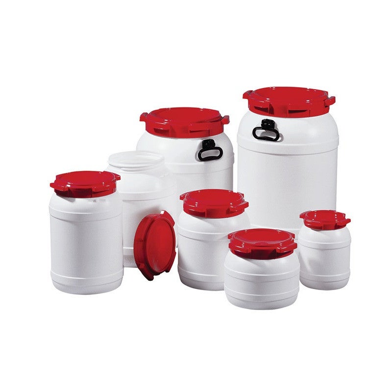 Tonnelet cylindrique 3.6 l PE blanc avec couvercle rouge sans poignées de transp