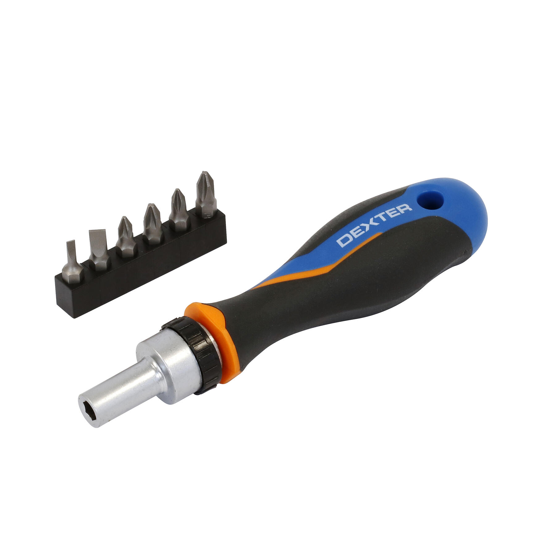 Tournevis à cliquet Dexter à 6 pointes en acier. Particulièrement adapté pour réaliser des travaux de vissage ou de serrage. Offre 5 ans de garantie.