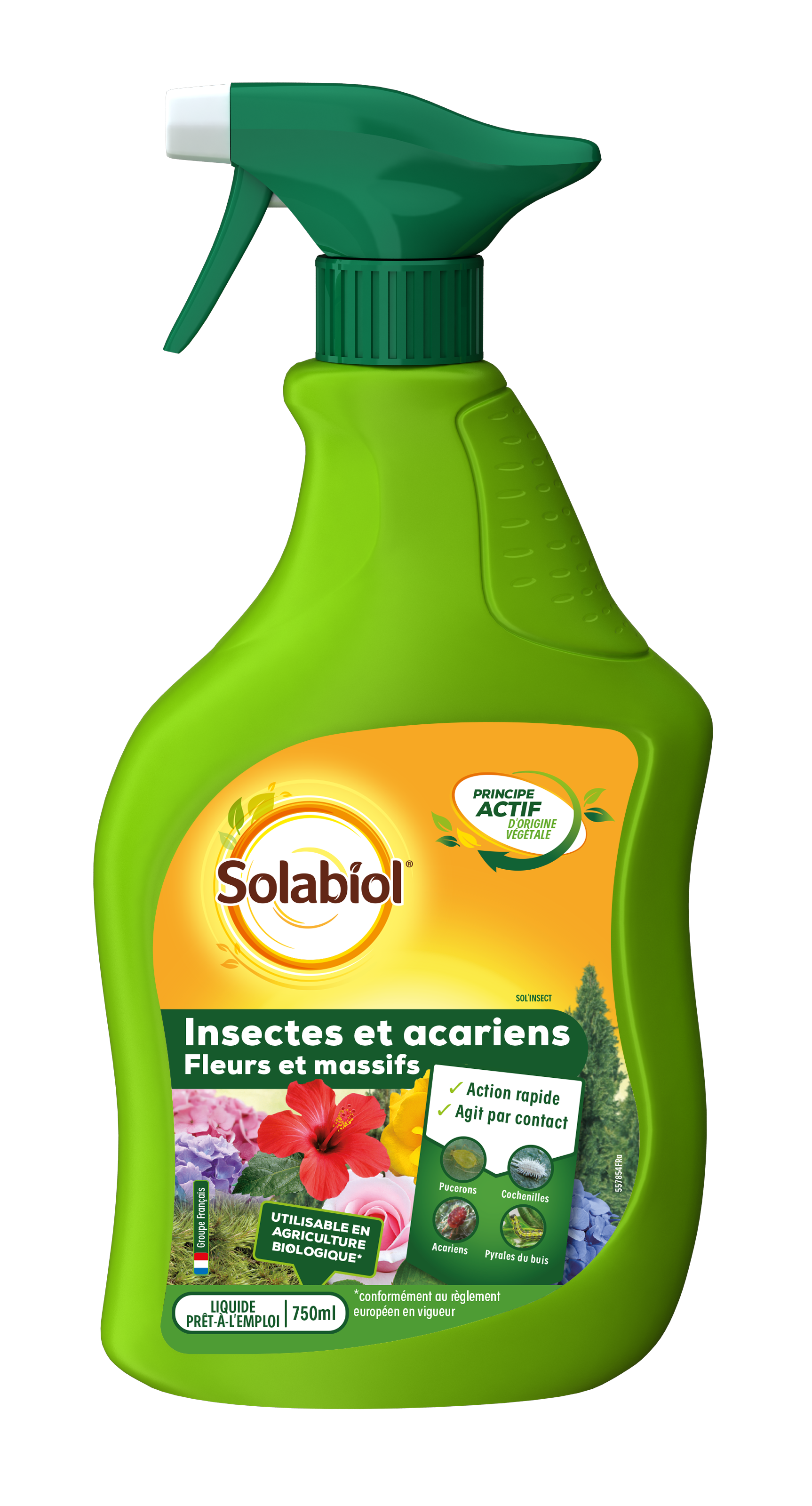 Le traitement Insectes et Acariens Solabiol permet de lutter efficacement de manière curative contre tous les pucerons des plantes ornementales et cultures florales du jardin. Composés d'extraits de pyrèthre et d’huile de colza, substances actives d'origine végétale, le produit agit par contact afin d'éliminer rapidement les insectes nuisibles.