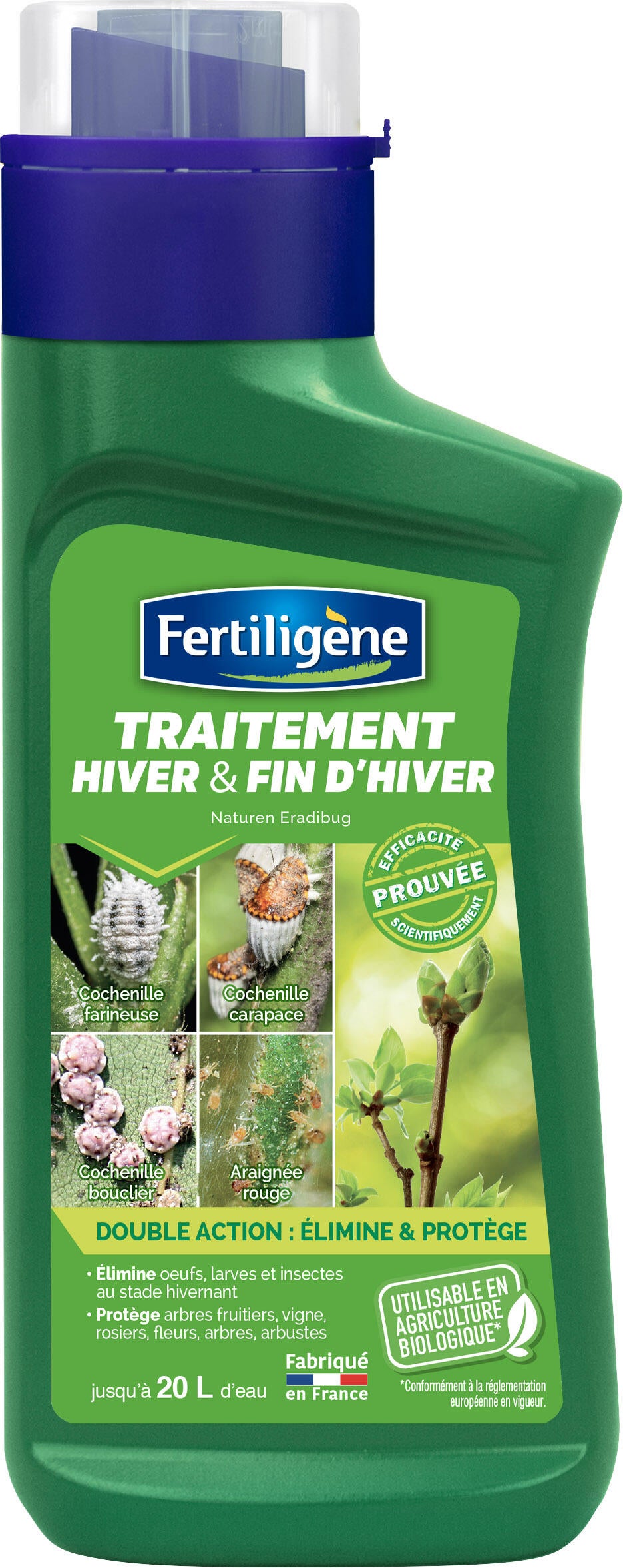 Elimine efficacement les oeufs, larves et adultes de nombreux insectes hivernants. S'utilise sur arbres fruitiers, vigne, arbres et arbustes d'ornement, délai avant récolte : 2 jours. Produit utilisable en Agriculture Biologique.