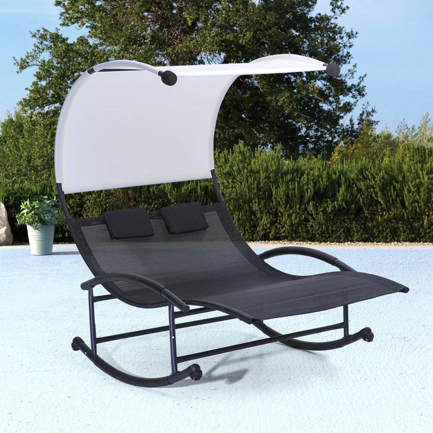 Transat double à bascule avec auvent noir et écru ESSAOUIRA