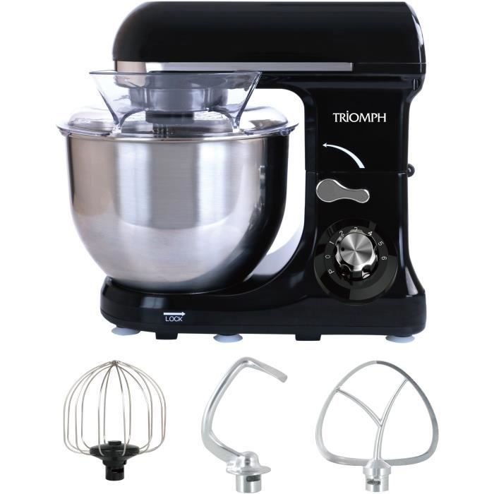 Robot Pâtissier - 600W Mouvement planétaire avec un moteur surpuissant Enveloppe en plastique ABS Commutateur 6 vitesses et position << pulse >> Cuve amovible en acier inoxydable 4L Avec 3 types de batteurs pour mélanger et pétrir la pate Couvercle anti éclaboussure transparent a