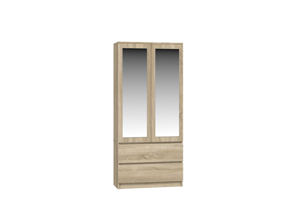 TURIN - Armoire 2 portes avec miroir style moderne chambre à coucher - 90x50x180 - 2 tiroirs - Sonoma