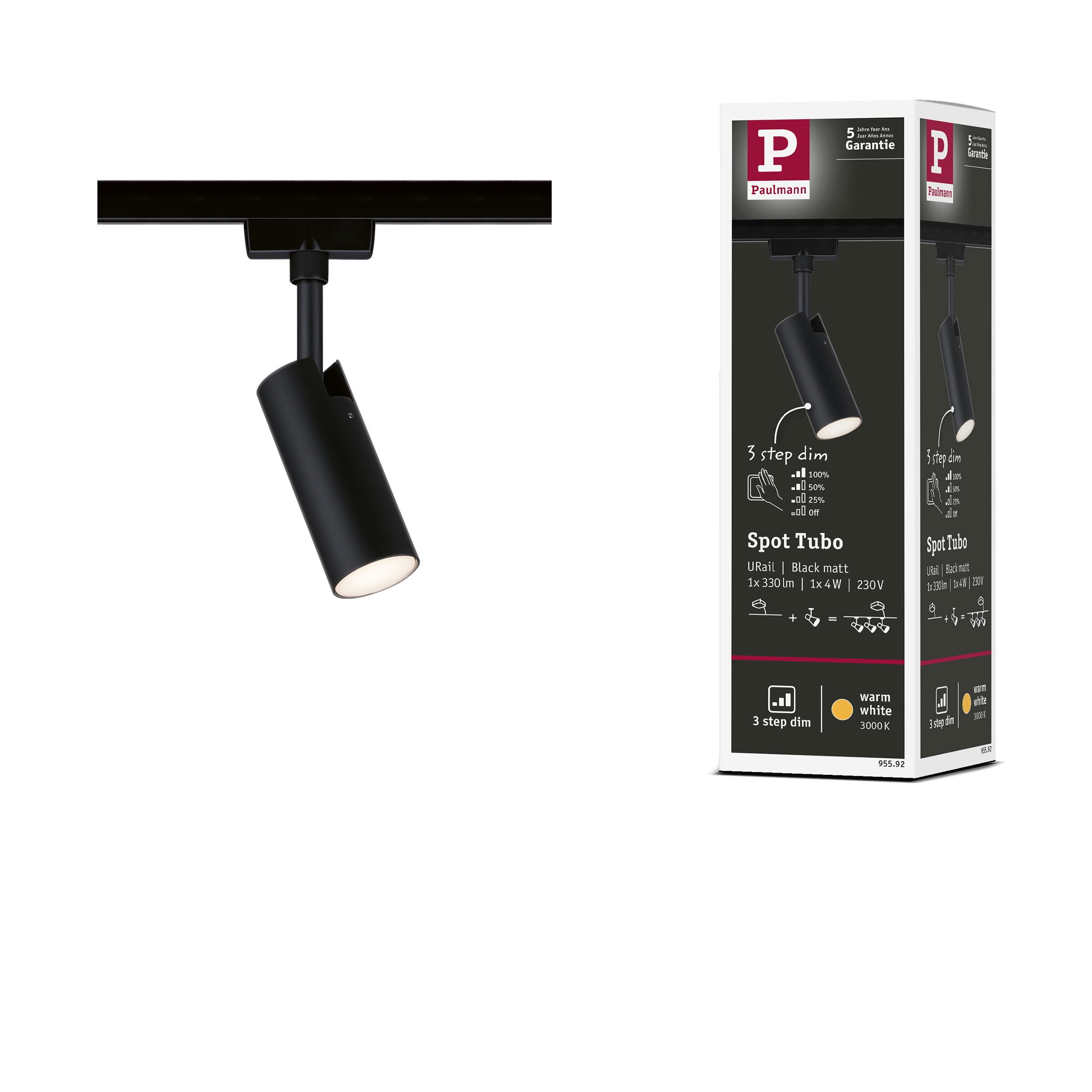 URail Spot sur rail 3-Step-Dim Tubo Spot individuel 190lm 4W 3000K gradable 230V Noir mat
