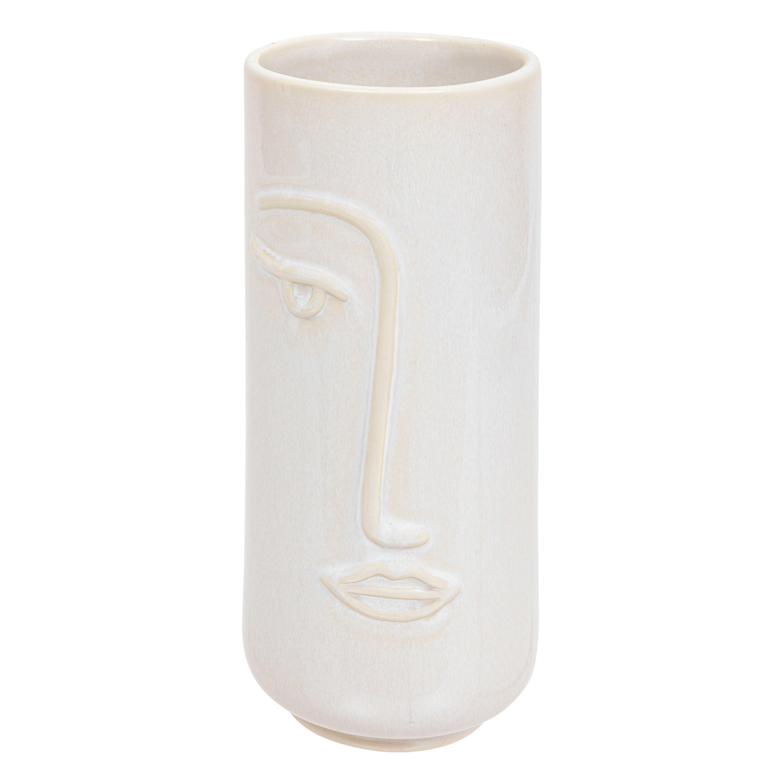 Vase décoratif en grès Visage, naturel l.11 x H.25 cm