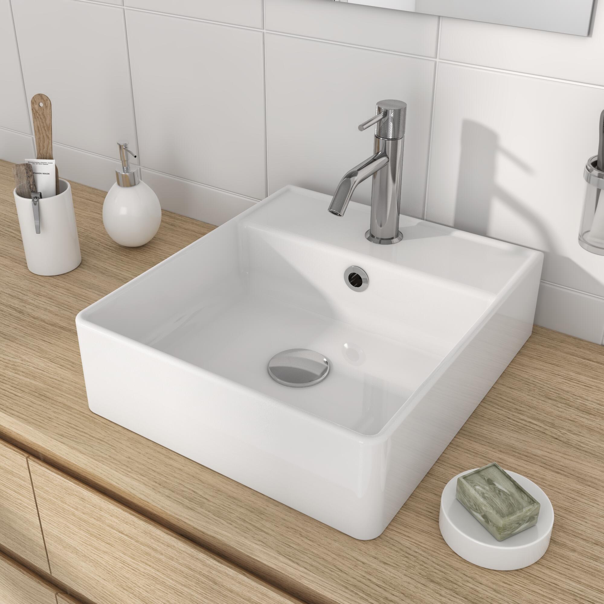 Vasque à poser céramique carré Square l.37 x P.42 cm blanc brillant
