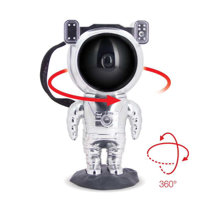 Veilleuse Astronaute, chrome rechargeable avec tête rotative, projection d'étoiles et d'une nébuleuse.
