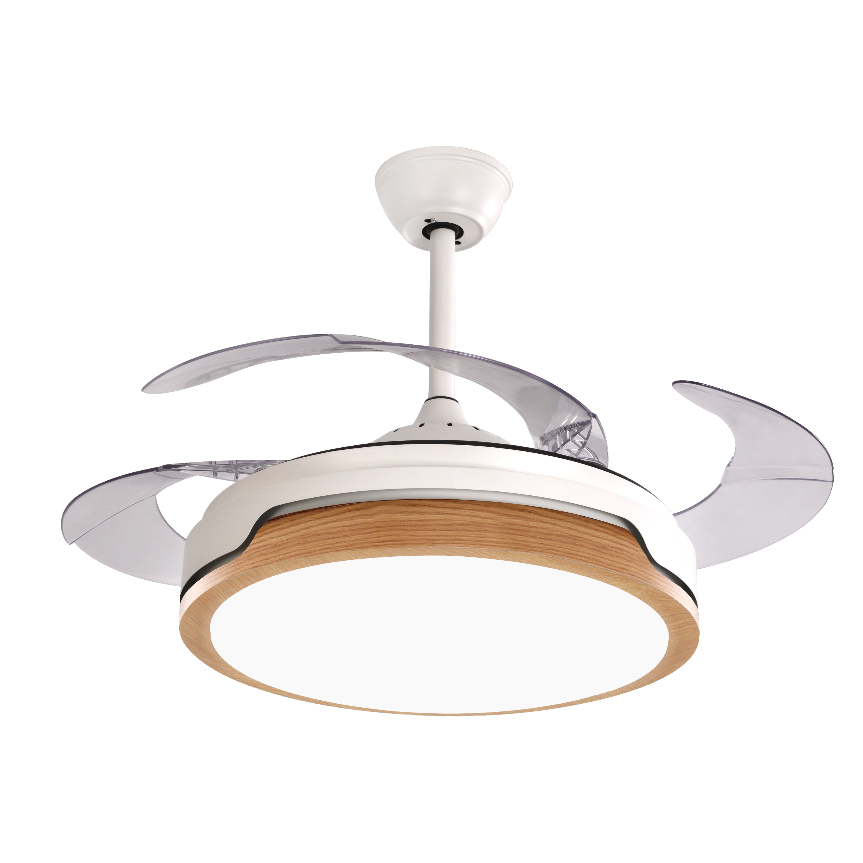 Ventilateur avec moteur DC, qui assure une ventilation adéquate avec un minimum de bruit et de consommation d'énergie. Il se caractérise par la polyvalence de ses pales rétractables et sa grande source lumineuse ornée d'un contour en couleur bois naturel. La caractéristique la plus importante est son éclairage périmétrique à commande indépendante, appelé mode nuit, qui crée une atmosphère très agréable.