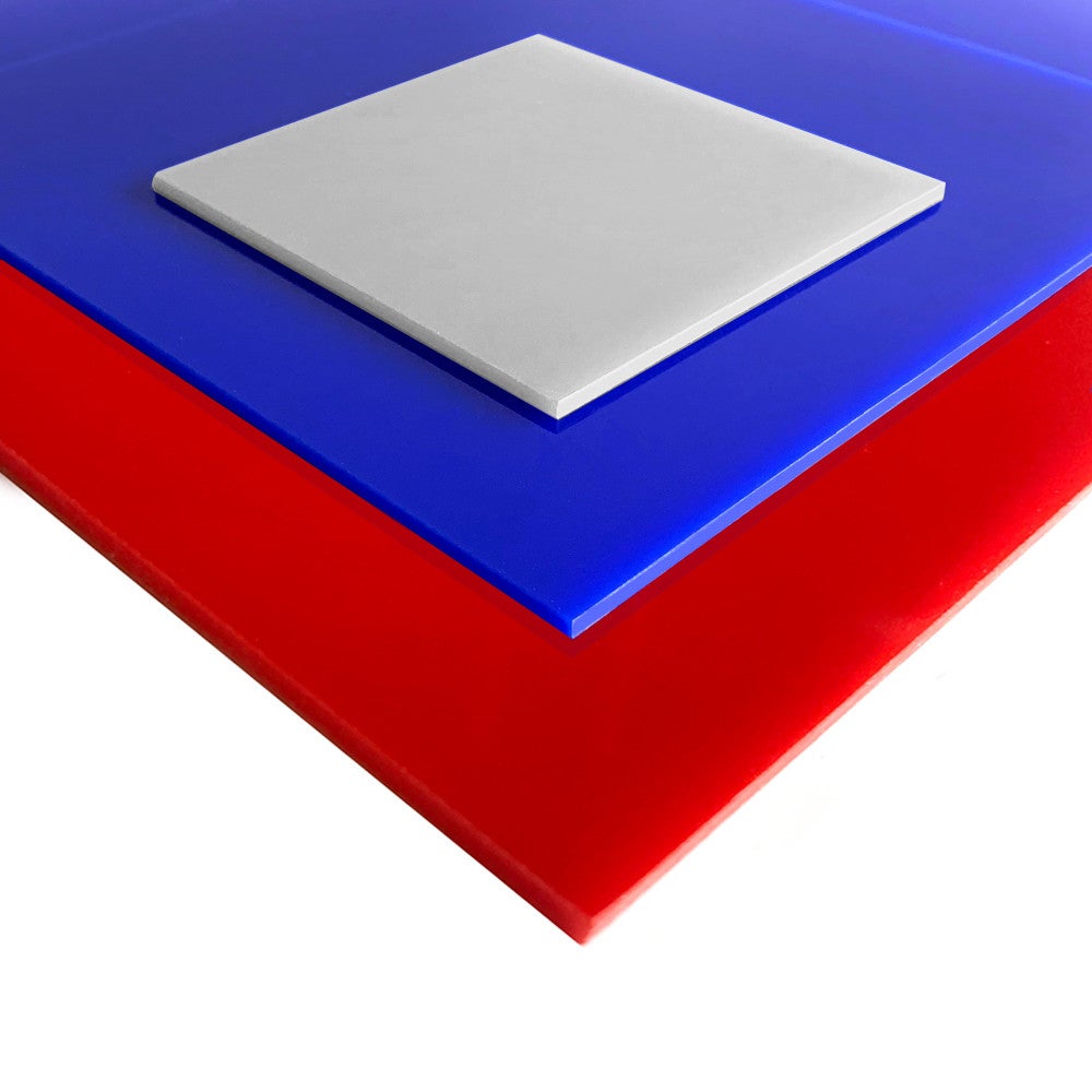 Le verre acrylique coloré convient à de multiples utilisations différentes notamment pour la décoration ou les travaux de finition intérieurs : décoration de table, tête de lit, crédence de cuisine, revêtement de plafond...Disponible dans une épaisseur de 3 mm et en 3 couleurs opaques : bleu, rouge, gris, la plaque de verre synthétique de couleur vous permet de créer, sans contrainte, un look de déco unique. Comparé au verre traditionnel, la paroi de protection en verre synthétique colorée offre bien des avantages comme : une bonne résistance aux chocs, aux rayons UV et une grande brillance. Comme toutes les autres feuilles acryliques, le verre acrylique coloré est facile à travailler. Vous pouvez fraiser, percer, coller, scier... sans aucun problème. Vous avez le choix de la couleur et des dimensions. Vous pouvez également contacter notre service client pour obtenir d'autres mesures. Les possibilités ne manquent pas ! Sachez que le verre synthétique coloré est un matériau statique qui attire la poussière. Heureusement, il se nettoie facilement avec un chiffon antistatique ou un détergent. Le verre acrylique de couleur est la solution idéale pour vous, si vous souhaitez mettre une touche de peps à votre intérieur.Afin de protéger la plaque de verre acrylique (PMMA XT) pendant le transport, un film de protection est appliqué sur chacune de ses faces. Attention : Pensez à bien retirer les 2 films protecteurs de la surface avant utilisation. Les deux côtés de la feuille étant par