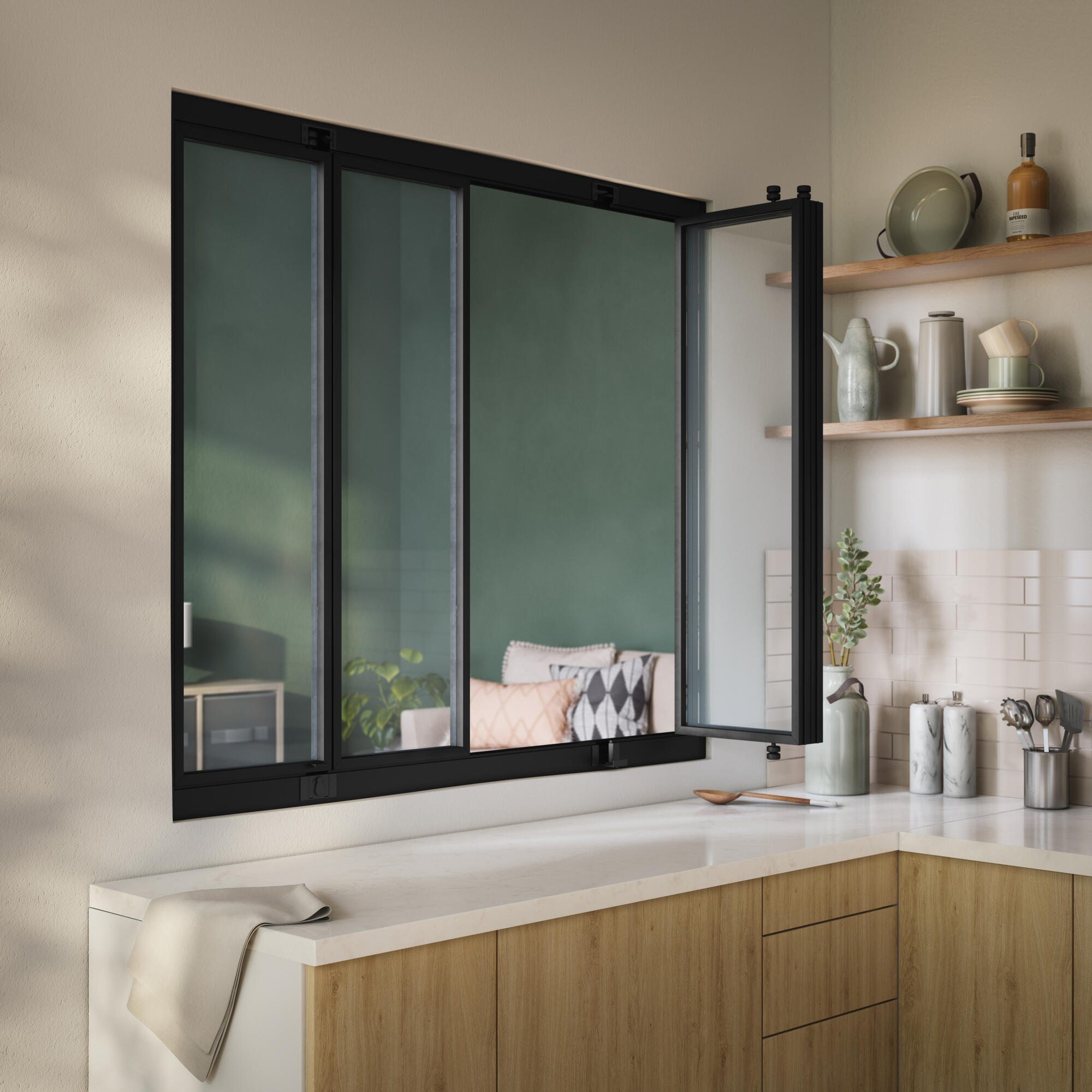 "Idéale pour apporter de la clarté dans votre intérieur, cette verrière coulissante de style atelier s'intégrera parfaitement chez vous ! Son plus ? Ses carreaux coulissants qui vous permettent d’ouvrir totalement ou partiellement votre verrière atelier pour créer une ouverture entre vos pièces. Cette verrière cuisine peut servir de passe-plat, mais elle peut aussi s’installer dans toutes les pièces que vous souhaitez cloisonner tout en gardant un passage. Facile à assembler, elle s’installe sur tous types de murs. Sa structure en aluminium et ses carreaux en verres trempés inclus vous garantissent résistance et sécurité. Elle est également garantie 10 ans. Existe en 4 ou 5 carreaux. Fixations murales non comprises. "
