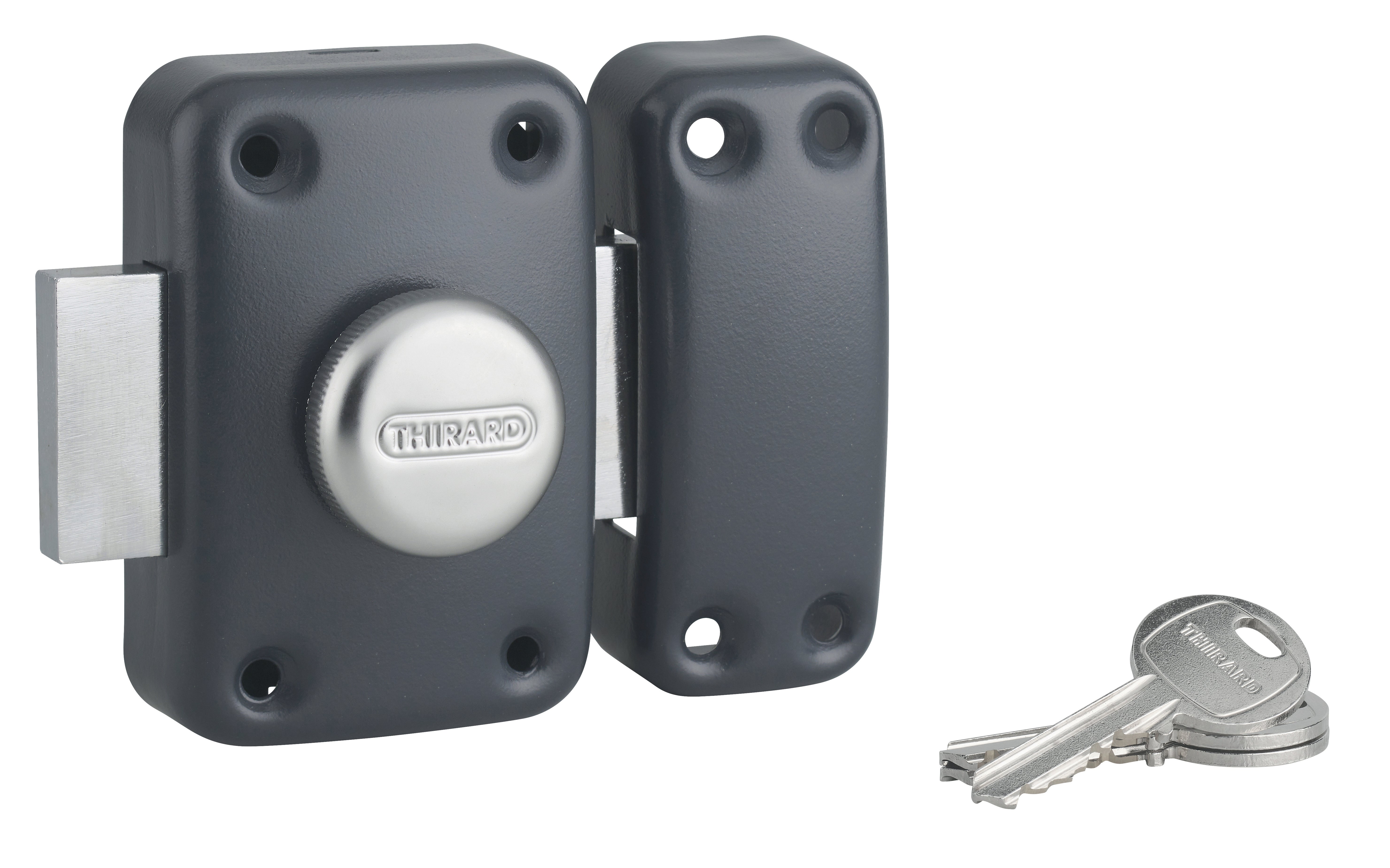Verrou bouton / cylindre THIRARD Apache, L.45 mm ent.fix. 38 l.60 x h.90 mm