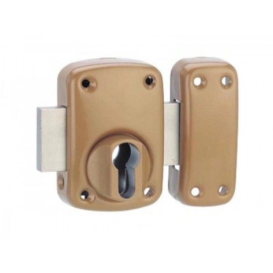 - Verrou avec coffre et gâche en acier emboutie verni bronze pour cylindre profilé