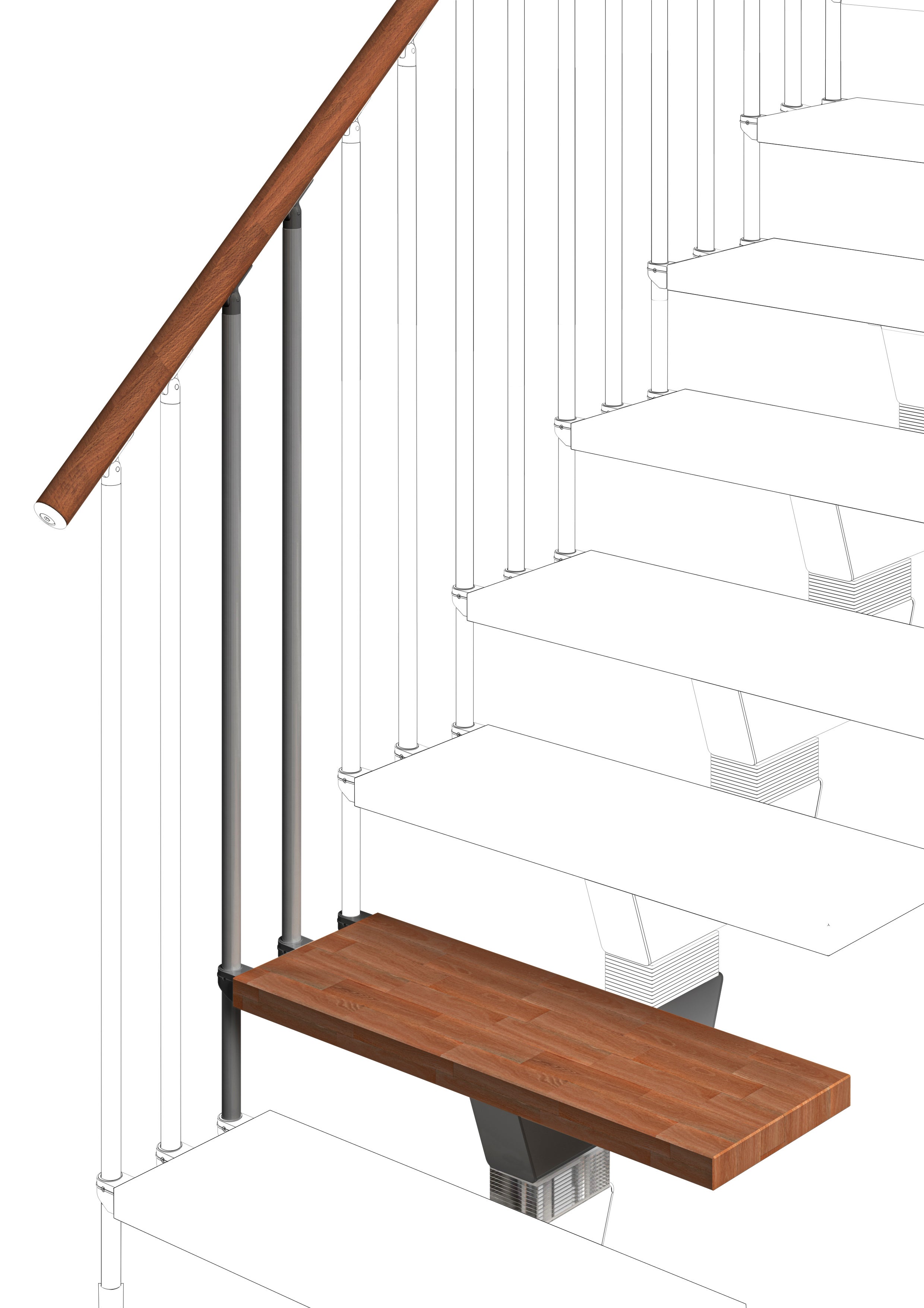 Vida - Marche Supplémentarie - Largeur 75 cm - Rampe avec colonnes vertical (Modèle Tube) (un côté) - Main Courante Bois - Couleur Bois: Noyer 25 - Couleur Métal: Gris Anthracite