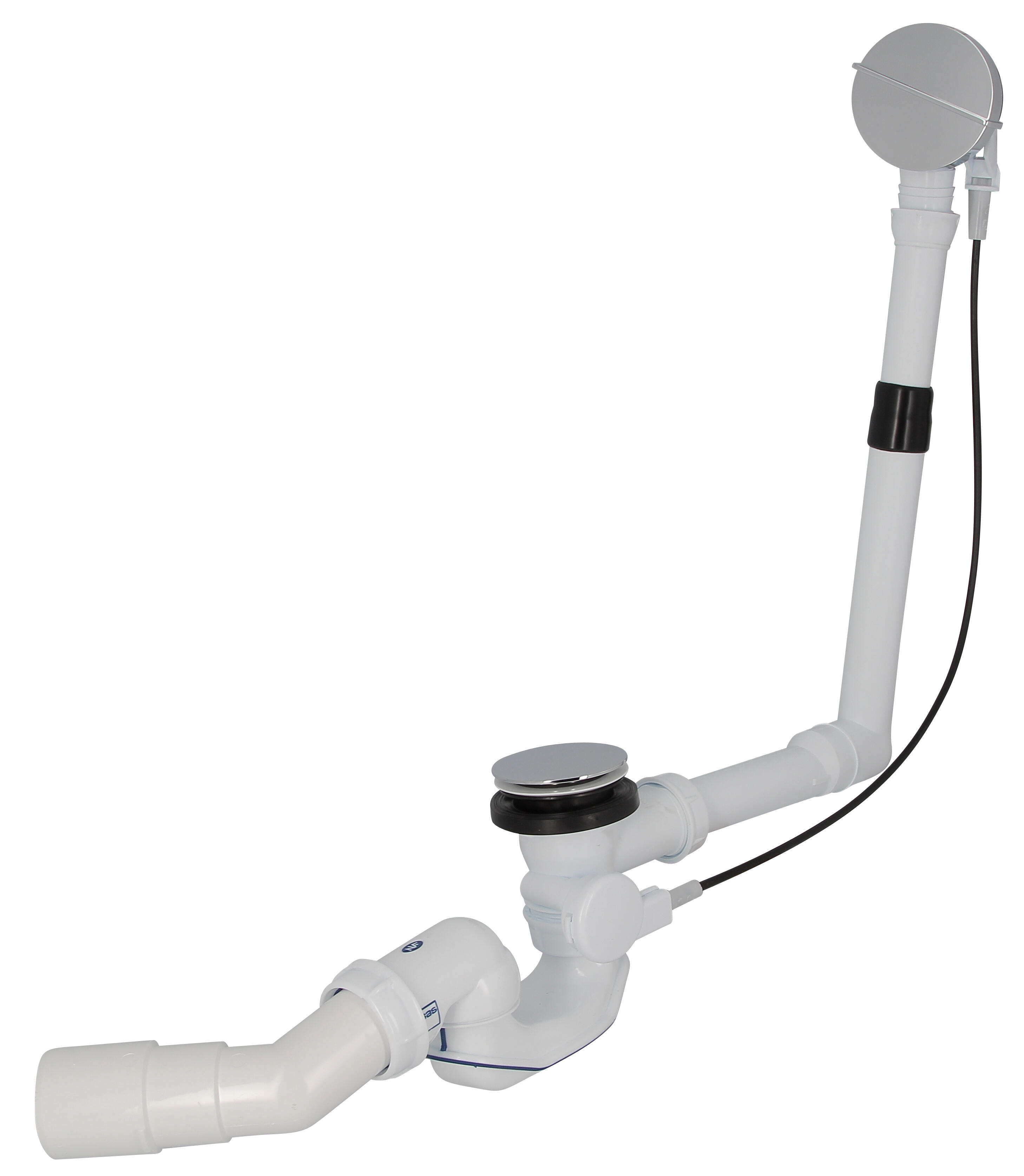 Vidage de baignoire à joints intégrés et volant laiton. Siphon autonettoyant orientable sur 360°, câble acier inoxydable, grand débit, finition laiton chromé.