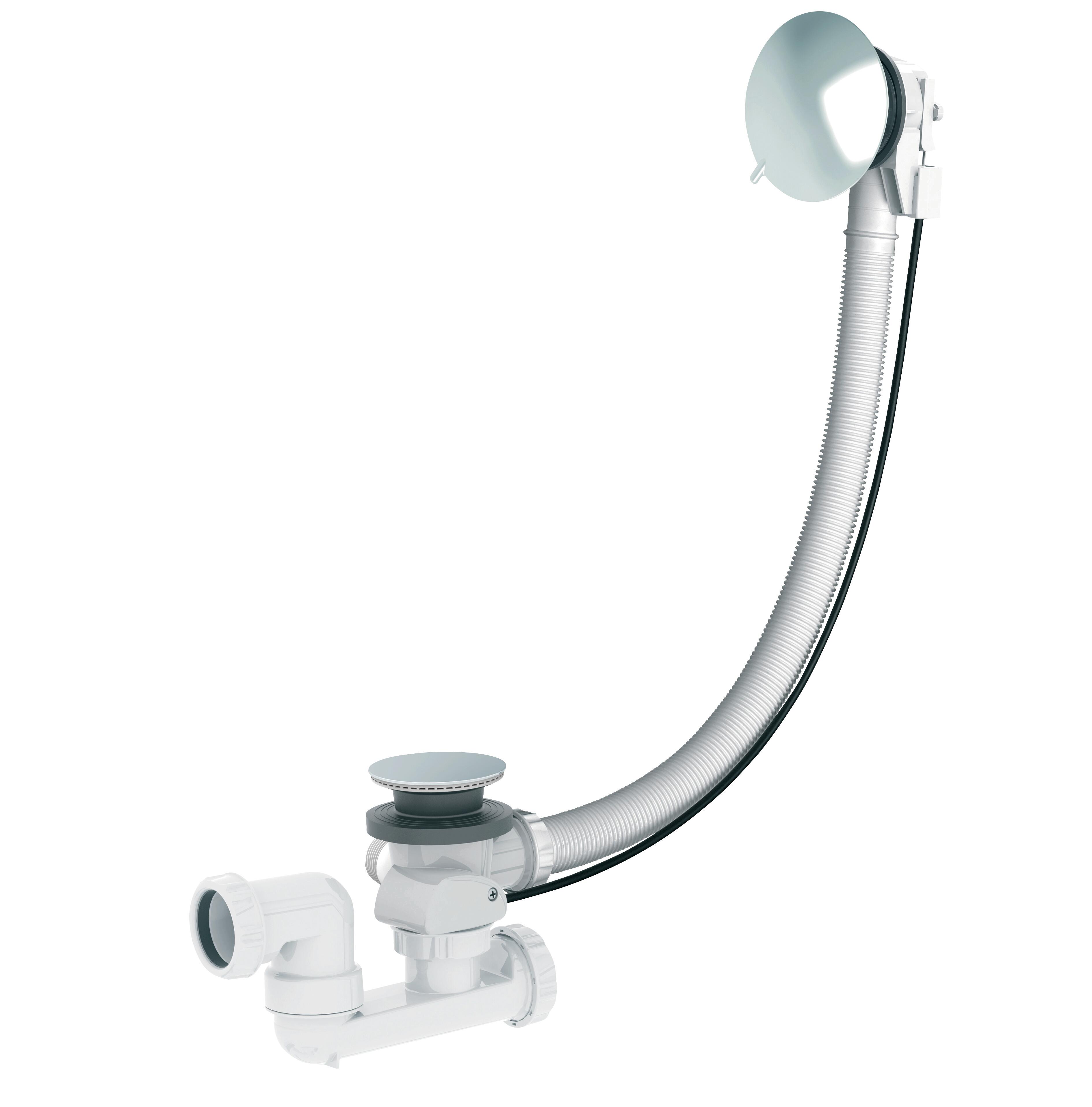 Vidage baignoire remplissage par le fond SILENCIO, clapet recouvrant inox, volant ABS chromé, câble 650 mm, cuvette inox Ø70 mm, serrage 0/17 mm, joint Autofix double, débit 48 l/mn, Technologie Fit express, flexibles de raccordement