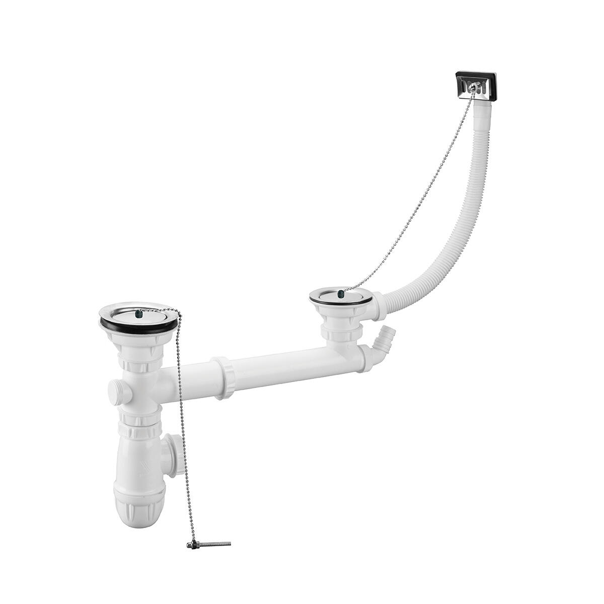 Garantie 10ans, Vidage NF, bondes avec enjoliveur chromé, siphon hauteur réglable, prise machine à laver ou trop plein